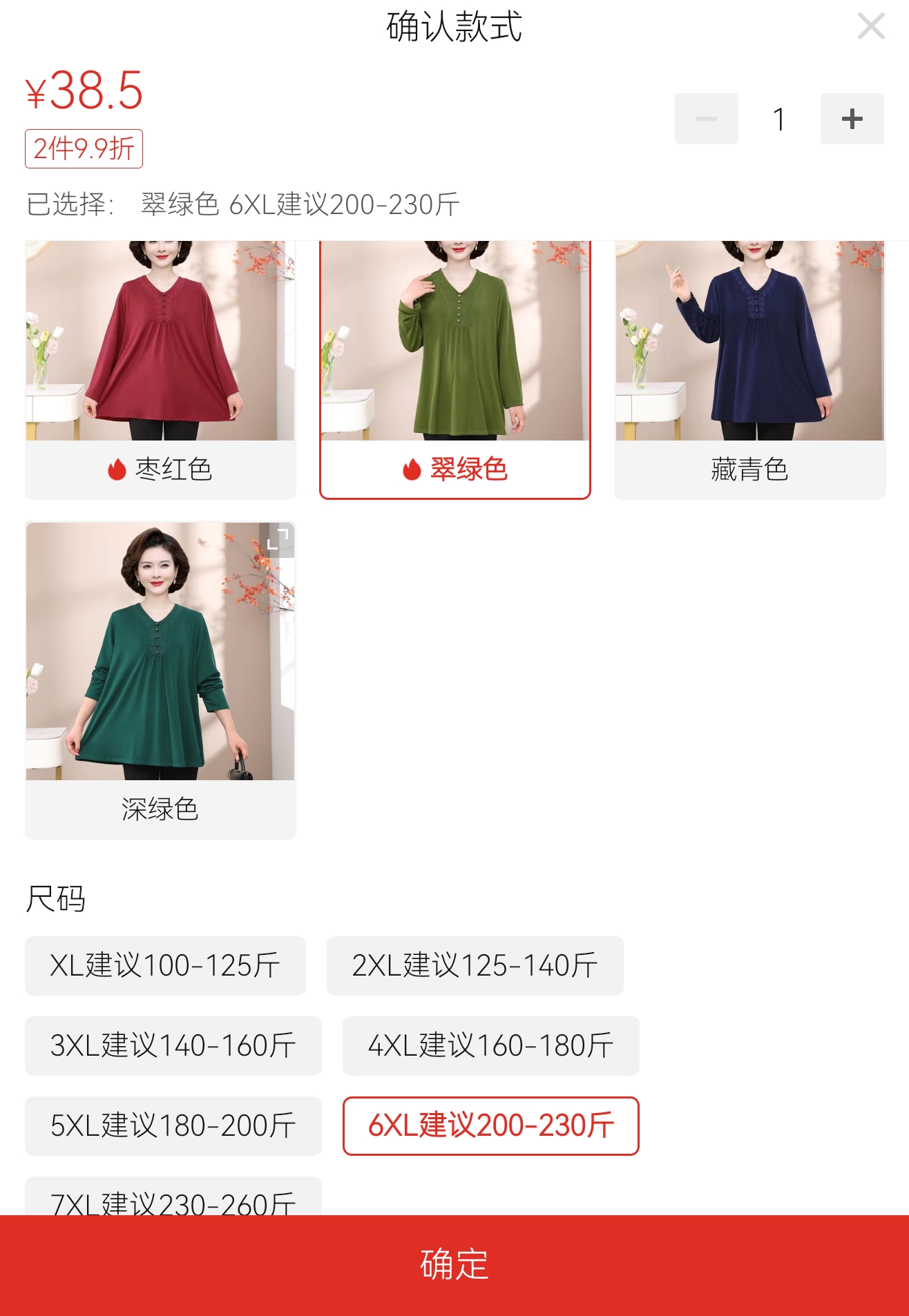 ①衣服(翠绿色 6XL建议200-230斤)共1件 38.5元 https://mobile.yangkeduo.com/goods2.html?ps=uFfxhAaF34