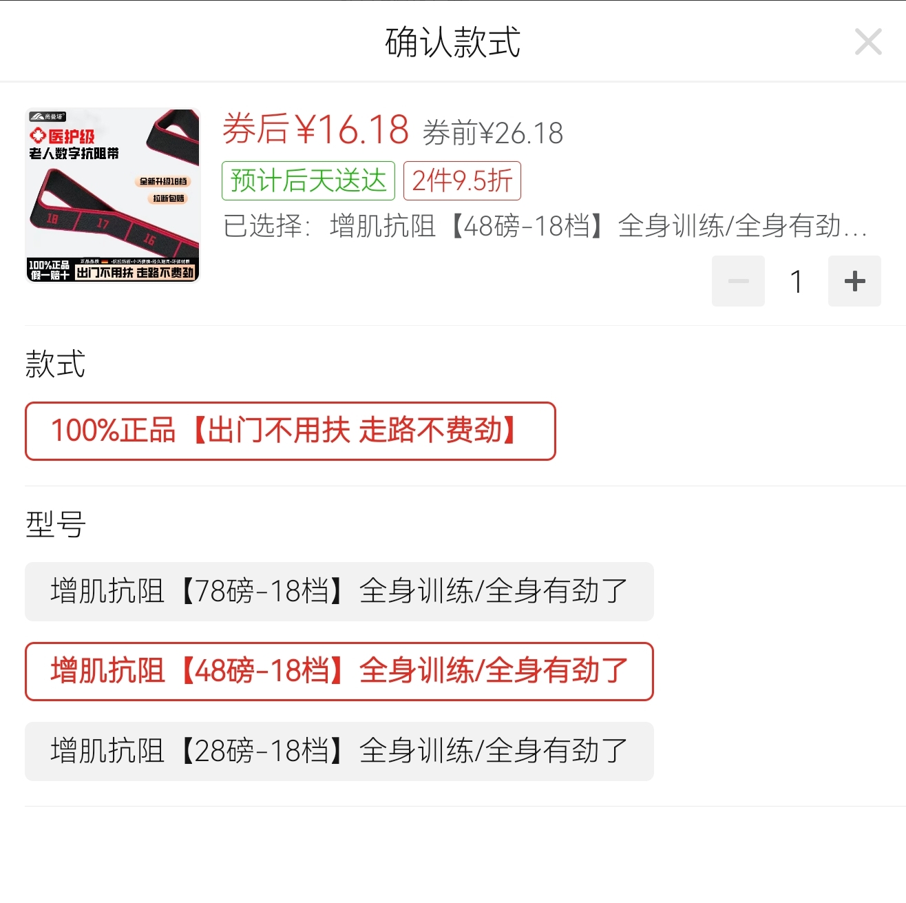 ②训练带(48磅-18档)共1件 16.18元 https://mobile.yangkeduo.com/goods1.html?ps=9DMxftdZHC