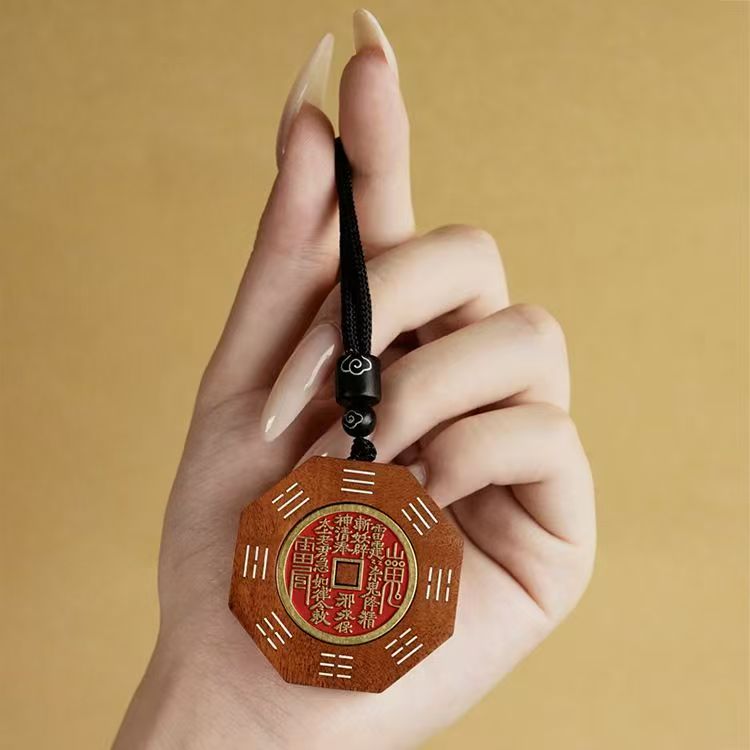 天然雷擊棗木純手工掛件吊墜先天太極八卦山鬼花錢