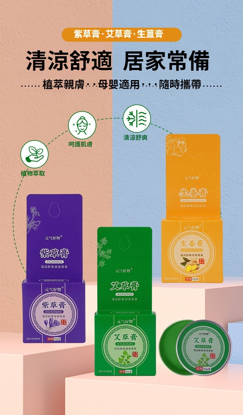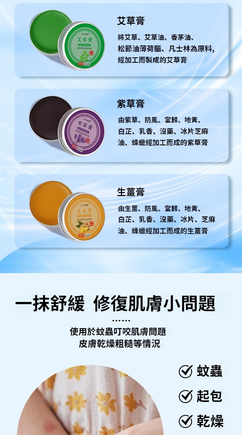 艾草香膏紫草膏生薑膏蚊蟲叮咬止癢膏清涼膏抑菌膏精油膏