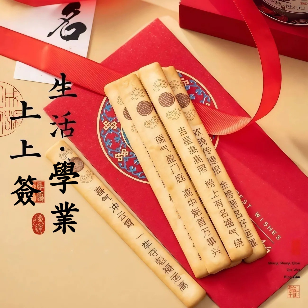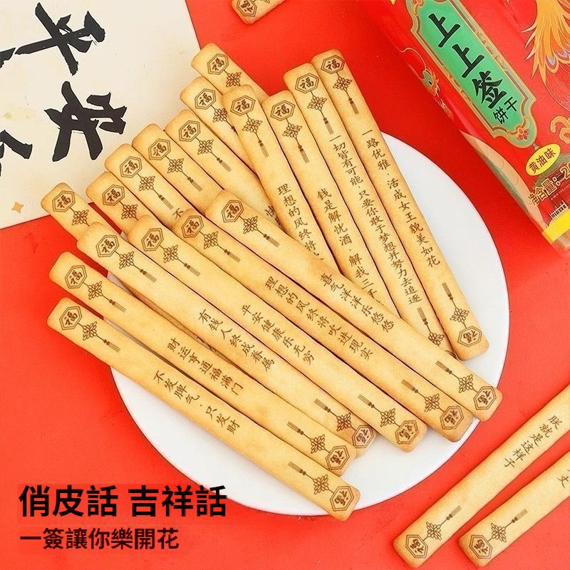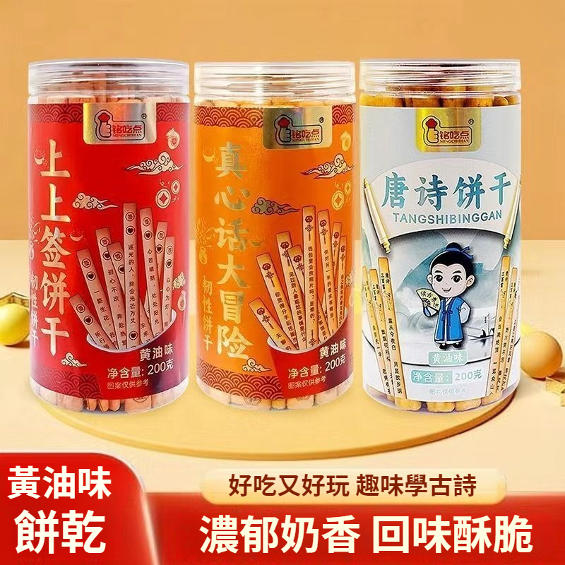 網紅爆款唐詩古詩詞韌性餅乾好運上上簽趣味餅乾聚會休閑零食罐裝