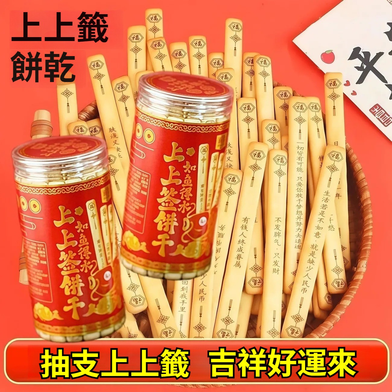 第 1 件 : 網紅爆款唐詩古詩詞韌性餅乾好運上上簽趣味餅乾聚會休閑零食罐裝