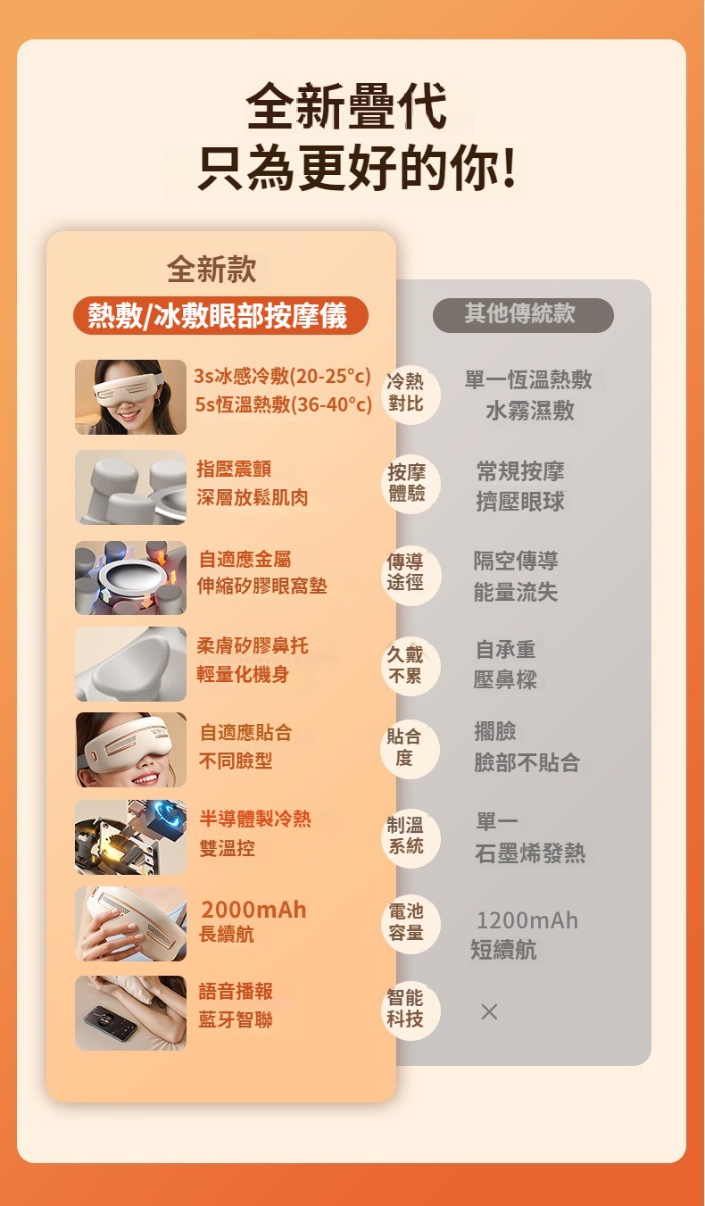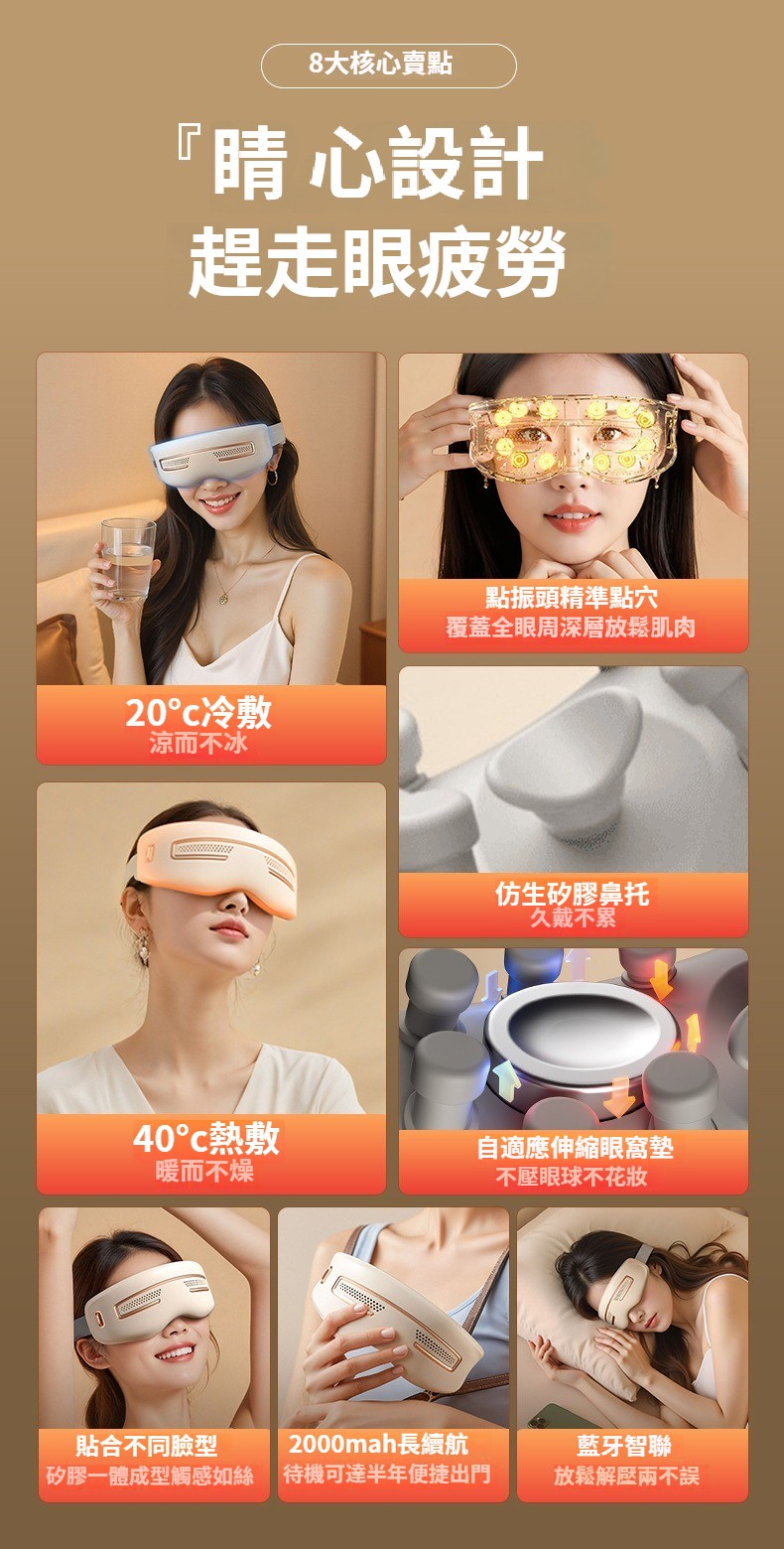 (高配版)冷熱冰敷+指壓振顫按摩+懸浮眼窩+無壓鼻托+藍牙+大容量電池】一臺3280