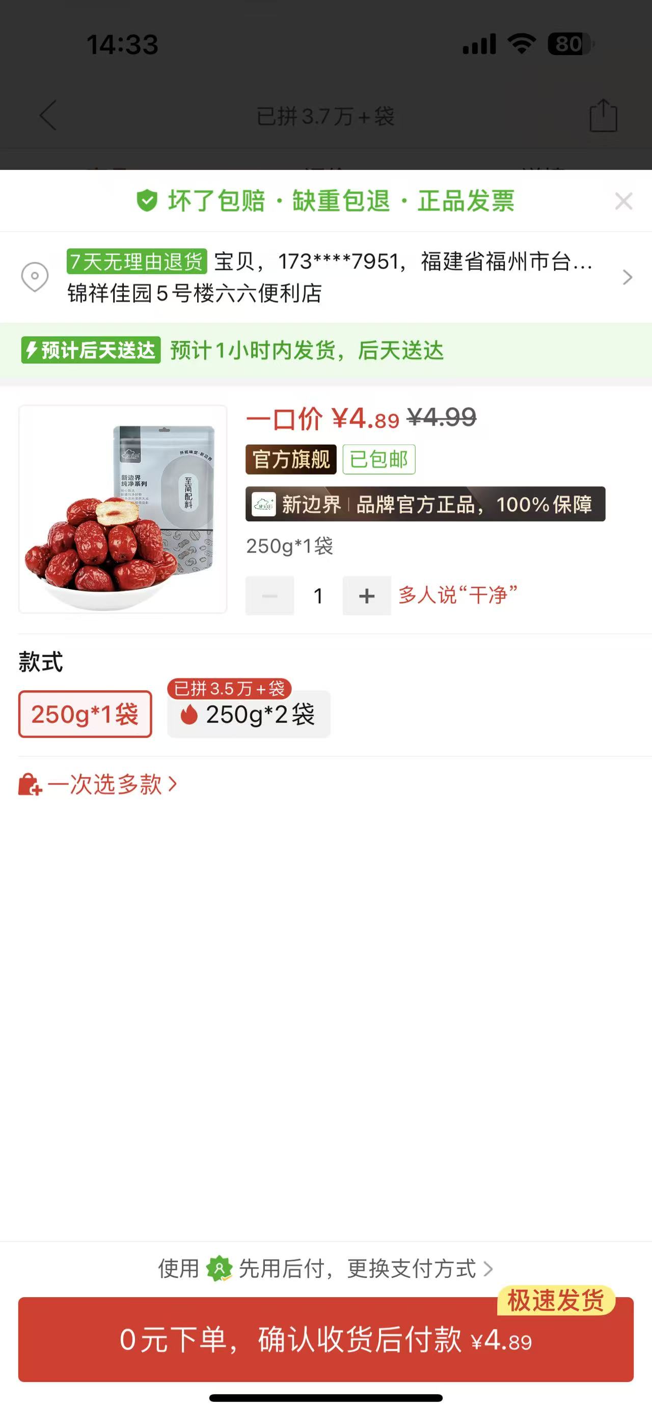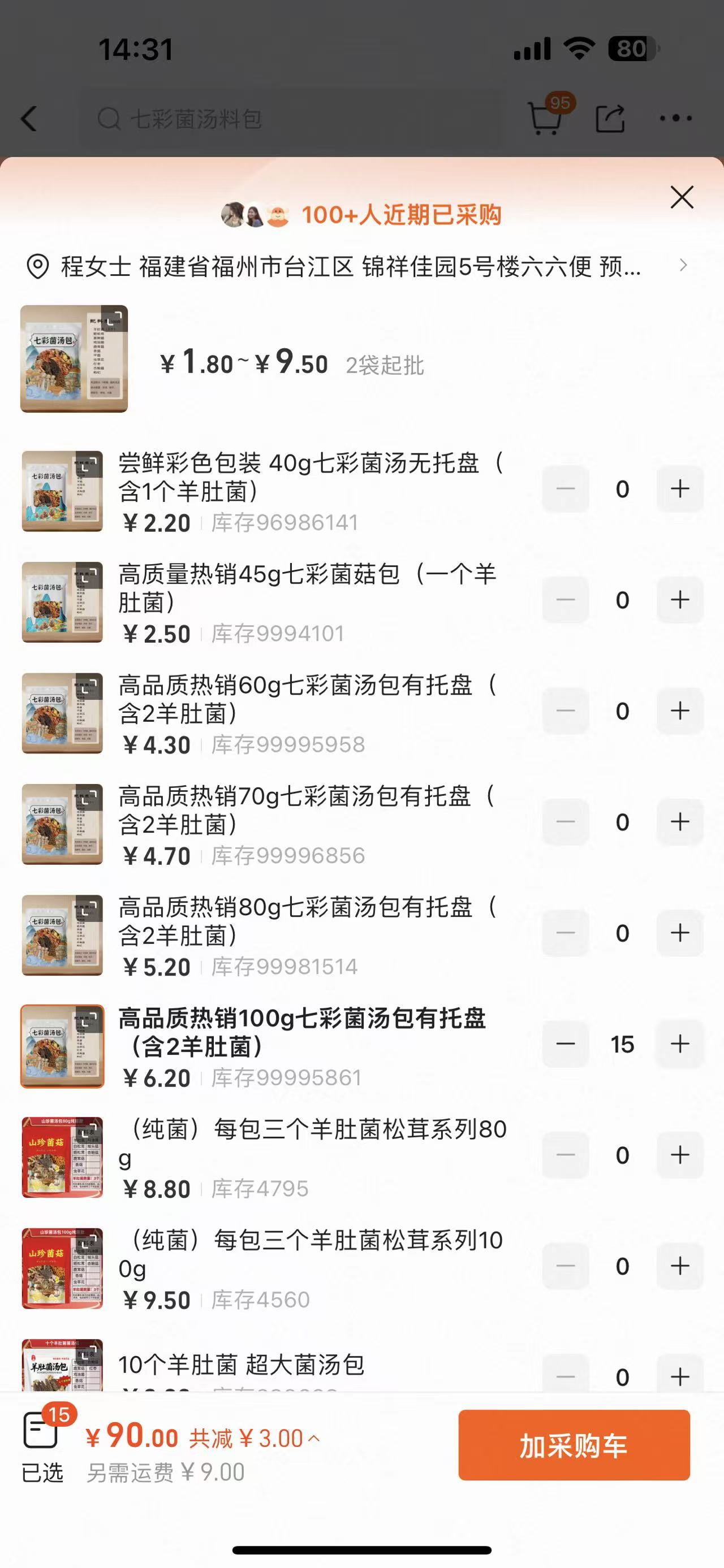 ①七彩菌菇湯包100g的15包+②新疆紅棗250g1包(103.89元)