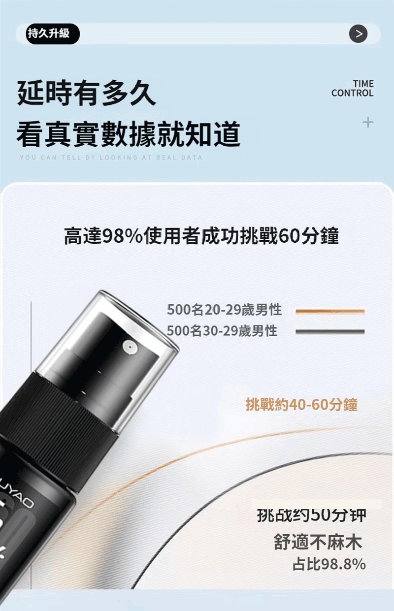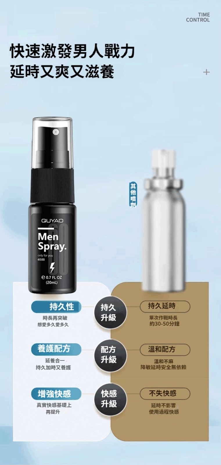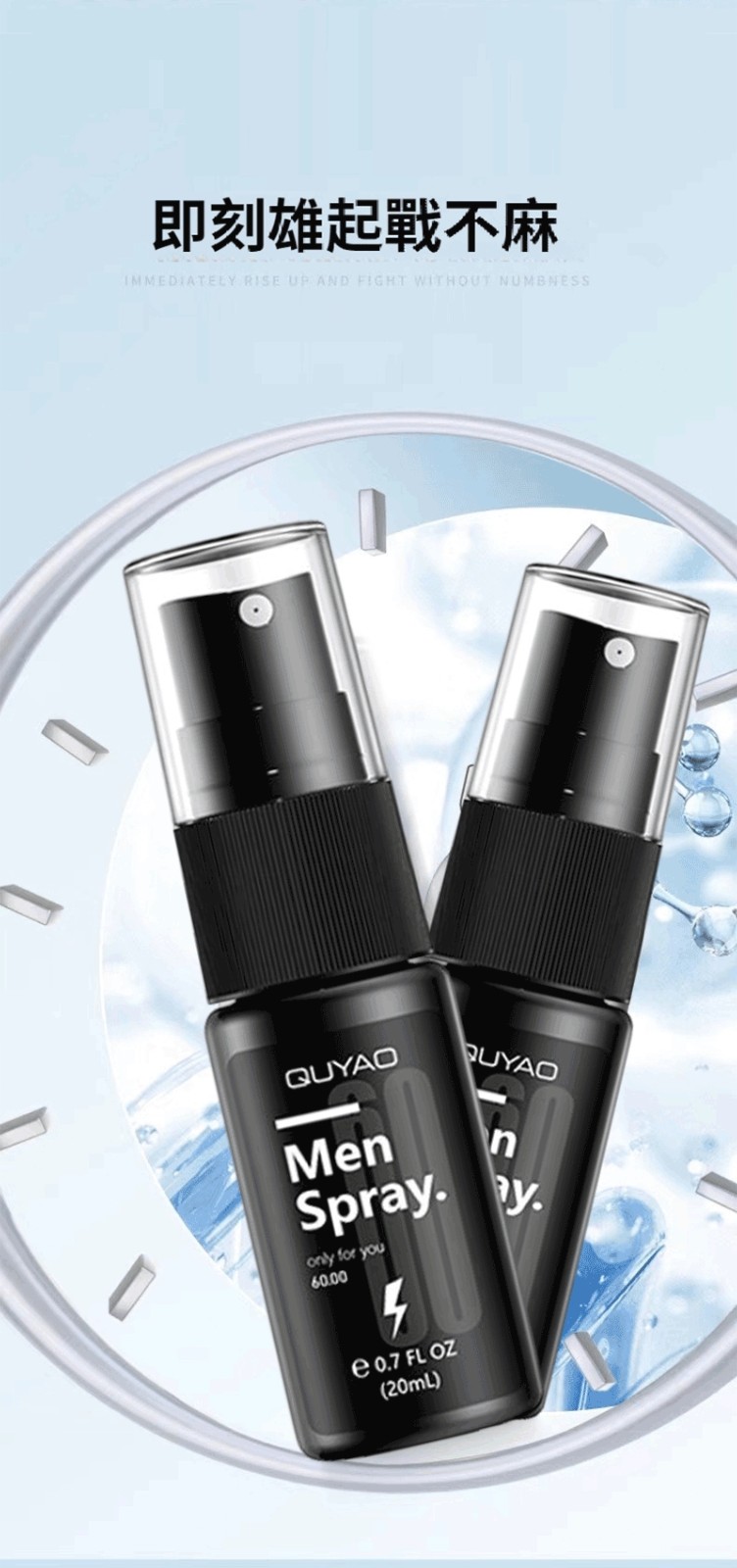 【QUYAO60男士延時噴劑・親密神隊友】 每次表現卡緊張?免煩惱!阮ㄟ「延時噴霧」給你自信滿滿~ ✔️ 溫和不刺激・效果看得見 ✔️ 植物萃取配方・降低敏感度・延長幸福感 ✔️ 清爽不黏膩・快速吸收・伴侶更滿意 ✔️ 隱密包裝・隱私百分百・訂購真安心 ??使用者見證: 「現在雙方攏盡興!感情變得更加甜蜜~」 NT$ 998