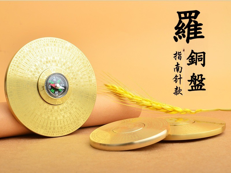 黃銅復古實心隨身迷你小羅盤太極八卦羅盤小指尖陀螺爆款羅盤