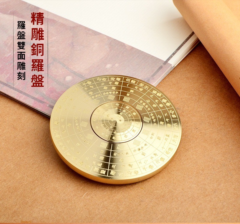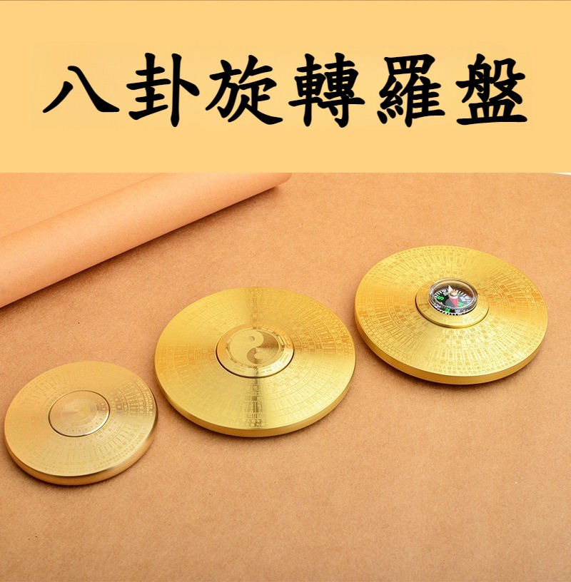 第 3 件 : 黃銅復古實心隨身迷你小羅盤太極八卦羅盤小指尖陀螺爆款羅盤