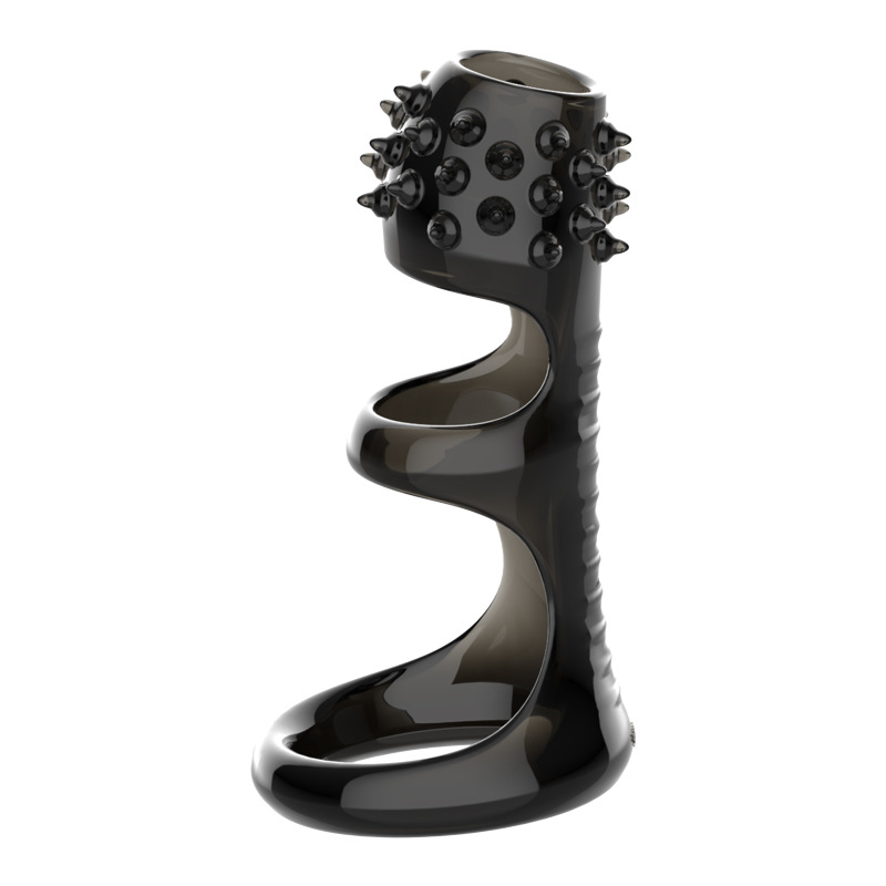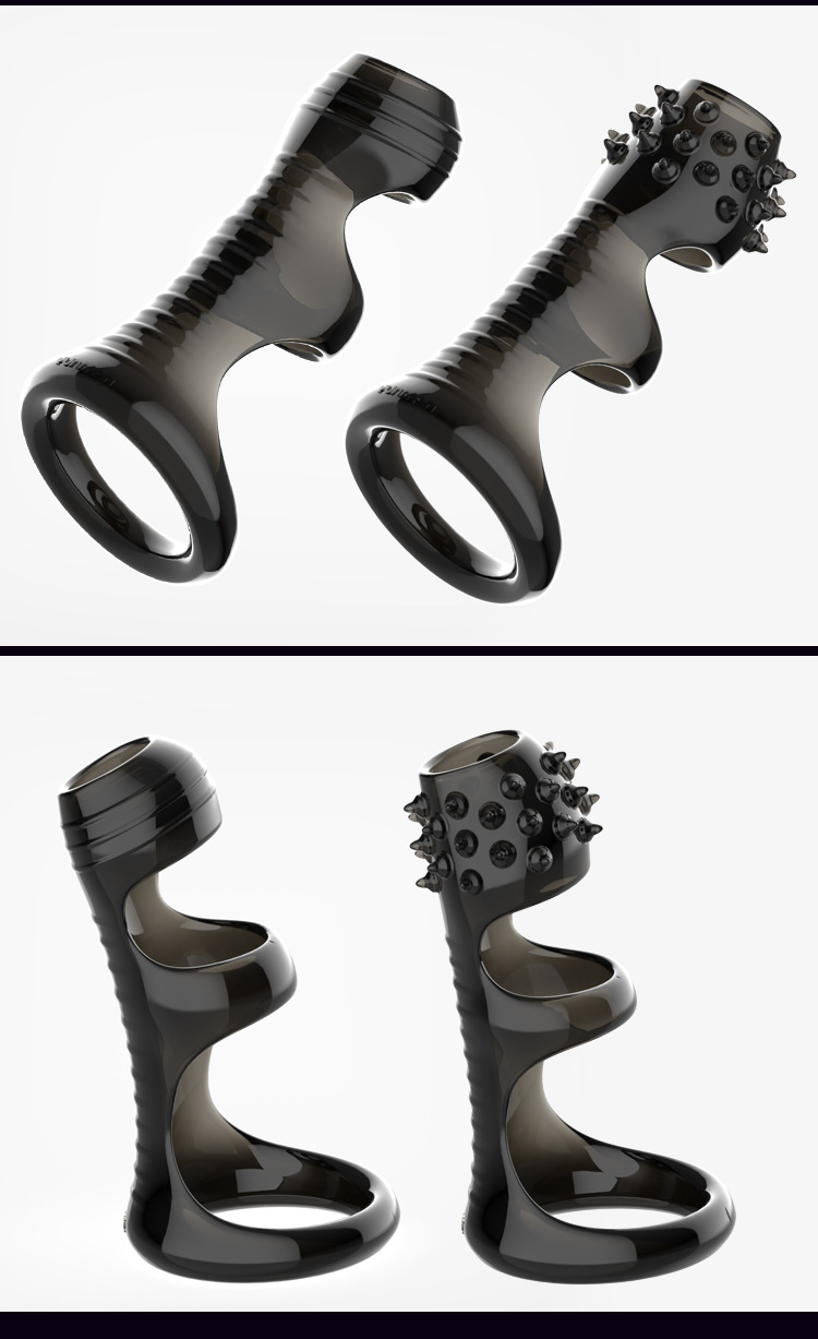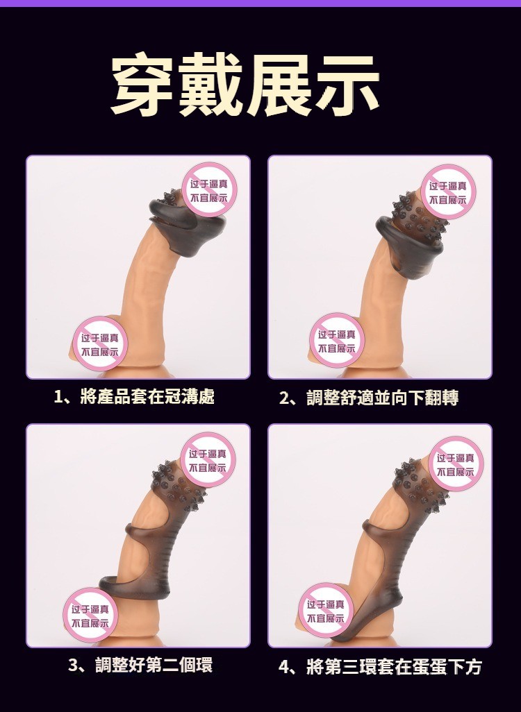 第 2 件 : 男用陰莖外出佩戴黑晶防脫螺紋刺點狼牙套加長加粗固蛋束縛套環