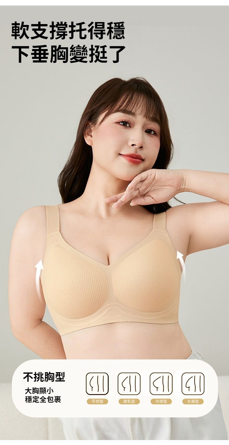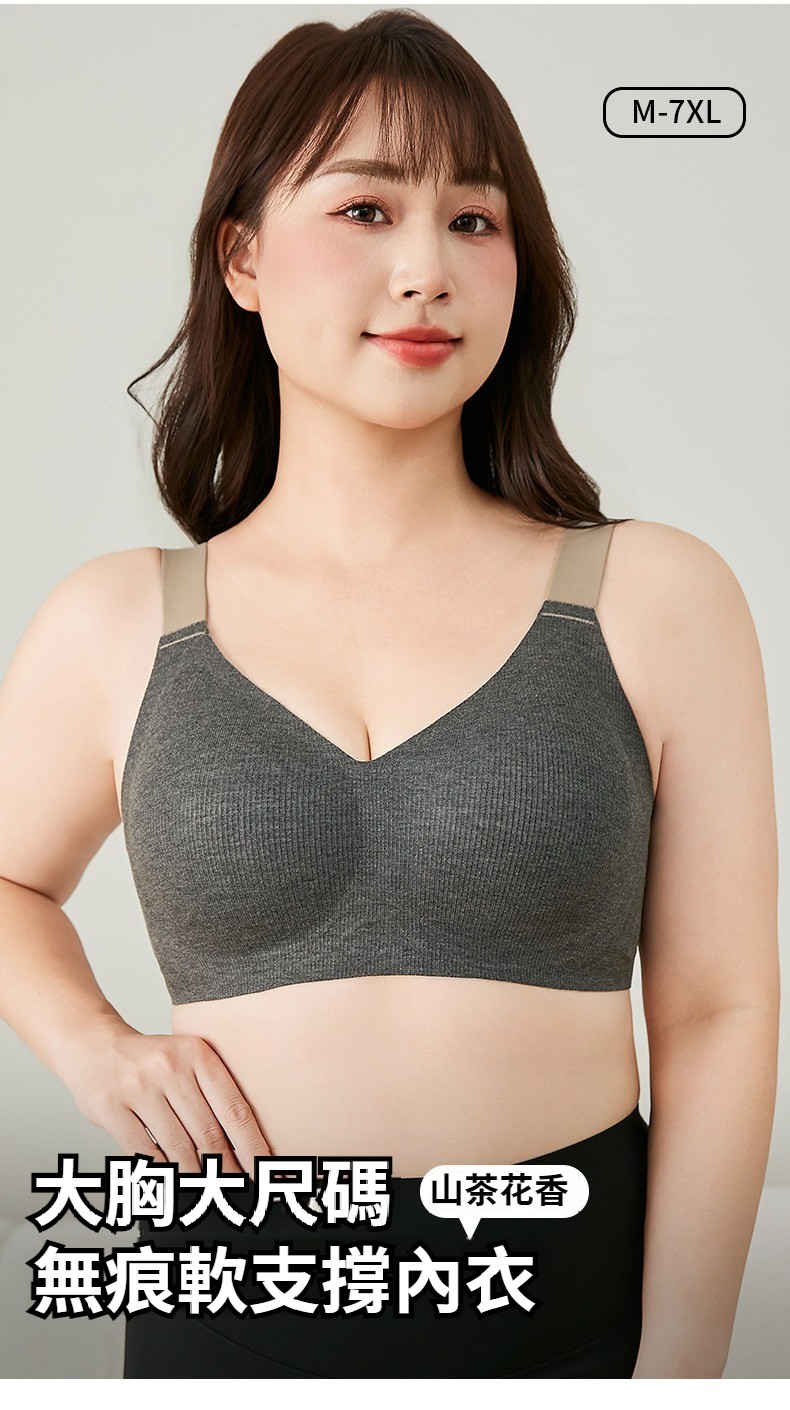 大碼顯小文胸、無鋼圈文胸無痕內衣,大碼大胸顯小女士聚攏防下垂全罩杯