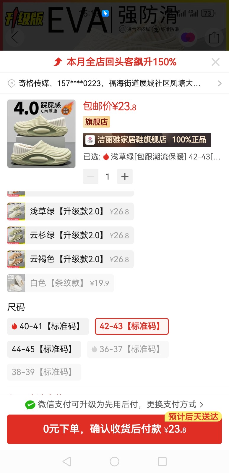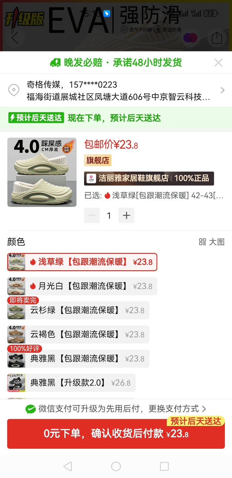 一、拼多多 https://mobile.yangkeduo.com/goods1.html?ps=Yv62cHdKoX 浅草绿42-43一双,月光白38-39一双,两双成本48元