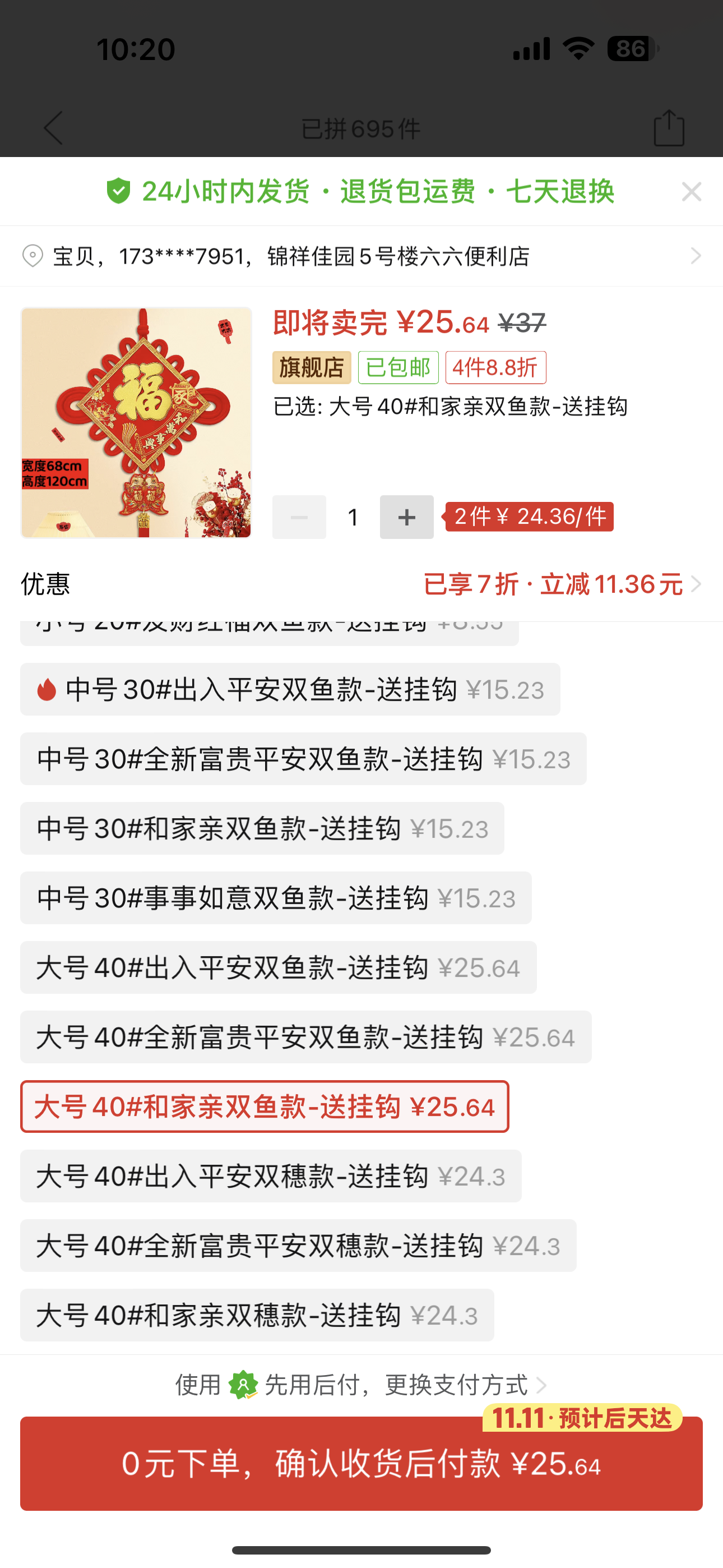 中國結一個大號40#和家親雙魚款送掛鉤