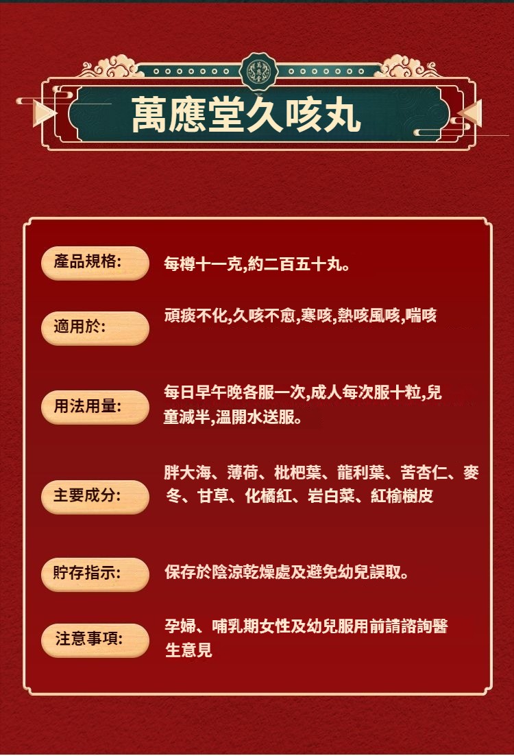香港萬應堂久咳丸進口久咳咳嗽強效止咳化痰原品直郵止咳化痰 NT$ 1199