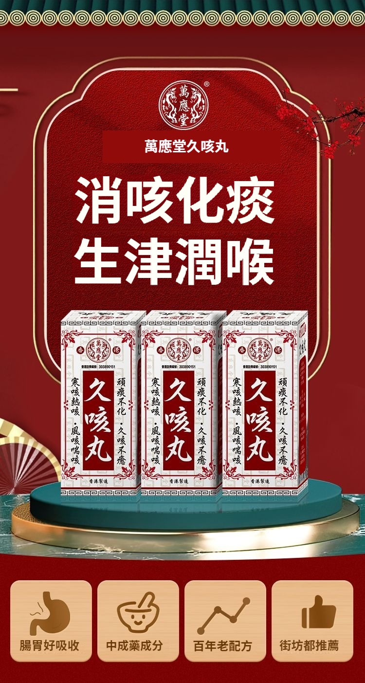 香港萬應堂久咳丸進口久咳咳嗽強效止咳化痰原品直郵止咳化痰