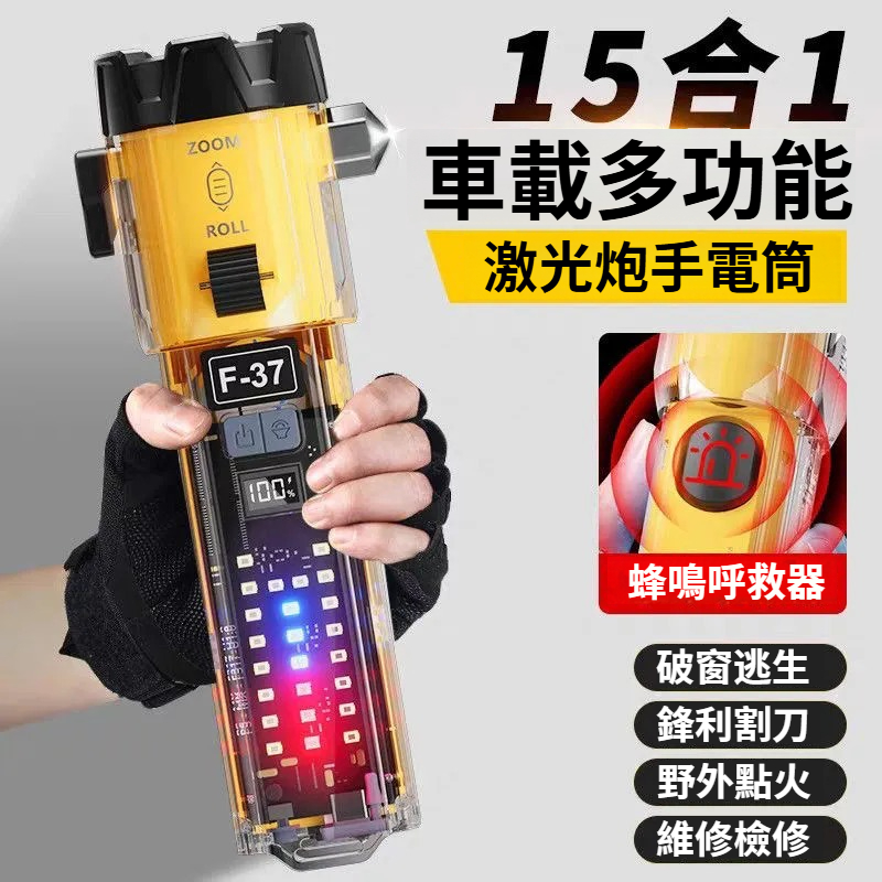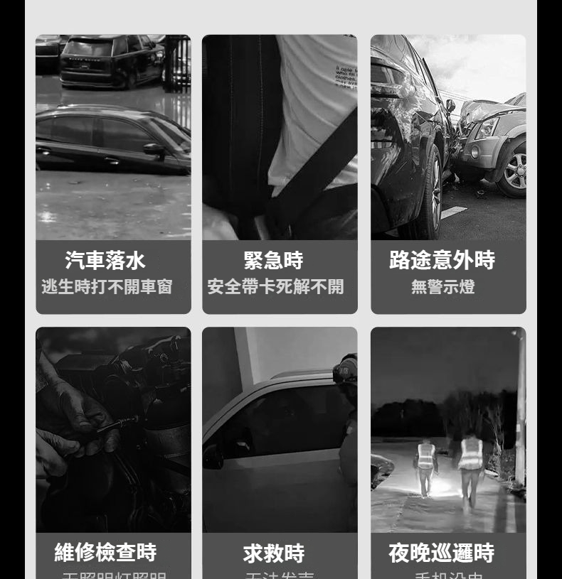 多功能手電筒汽車緊急照明燈照明燈強光爆閃燈車載破窗器逃生安全錘車