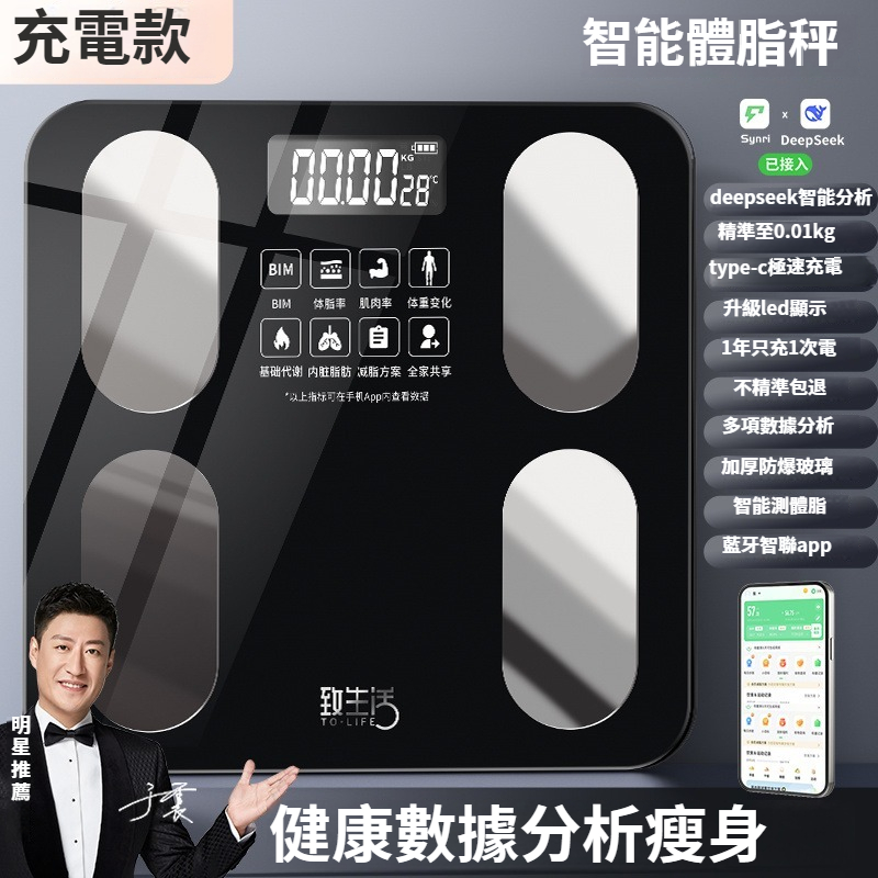 【明星推薦】耀世黑|測重無誤差+減肥專用【APP精準測脂體脂秤】TPC快充款