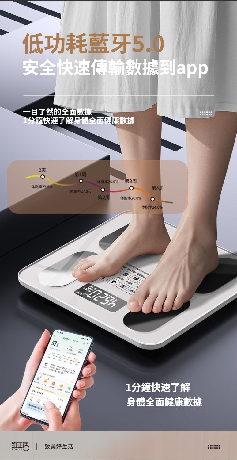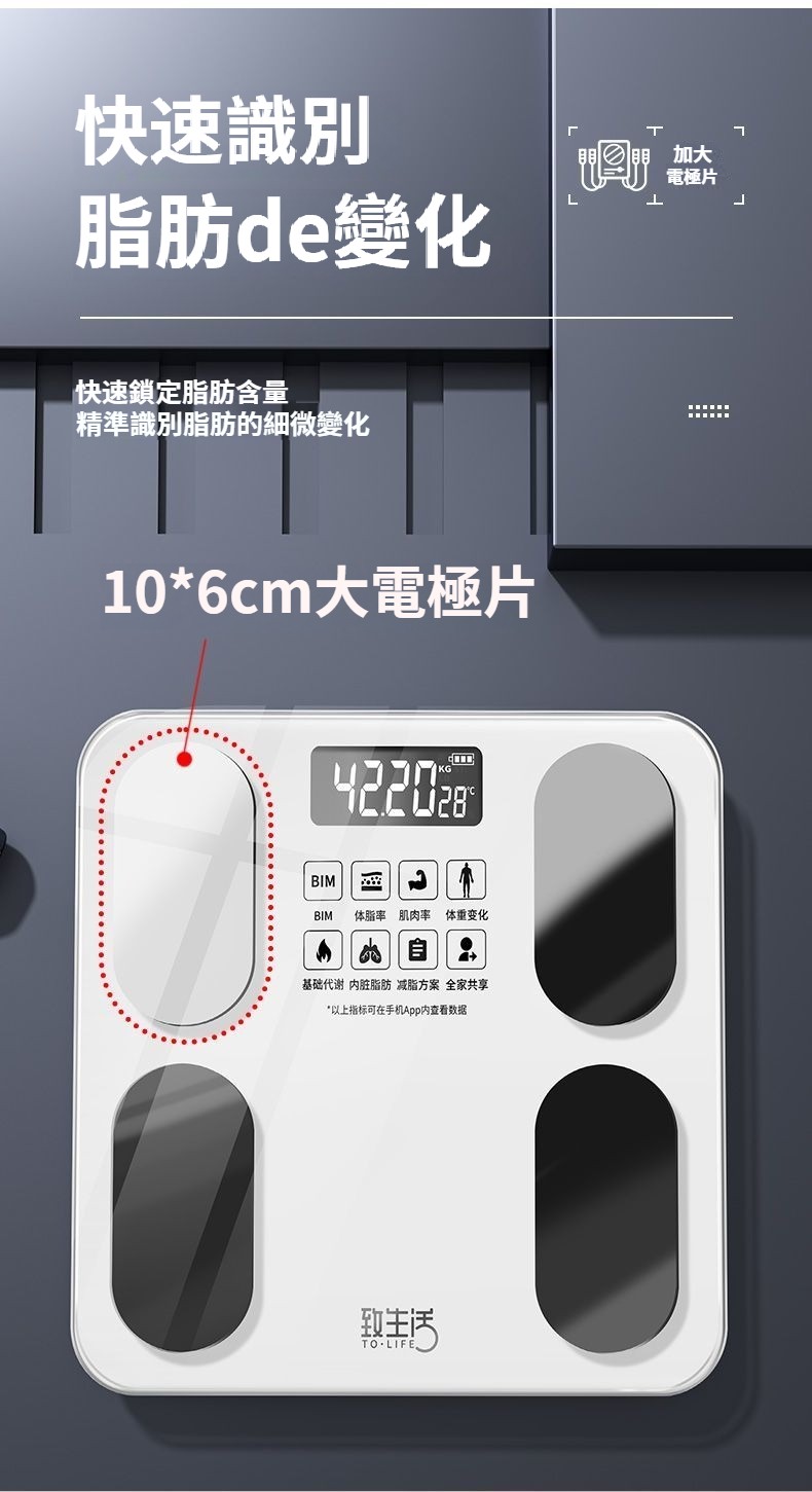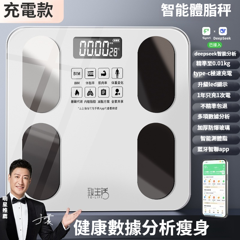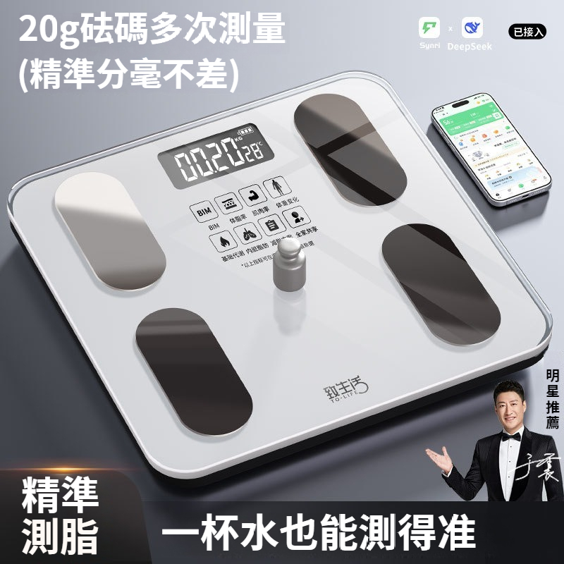 【明星推薦】星光白|科研高精密 全智能芯片+減肥專用【APP精準測脂體脂秤】TPC快充款