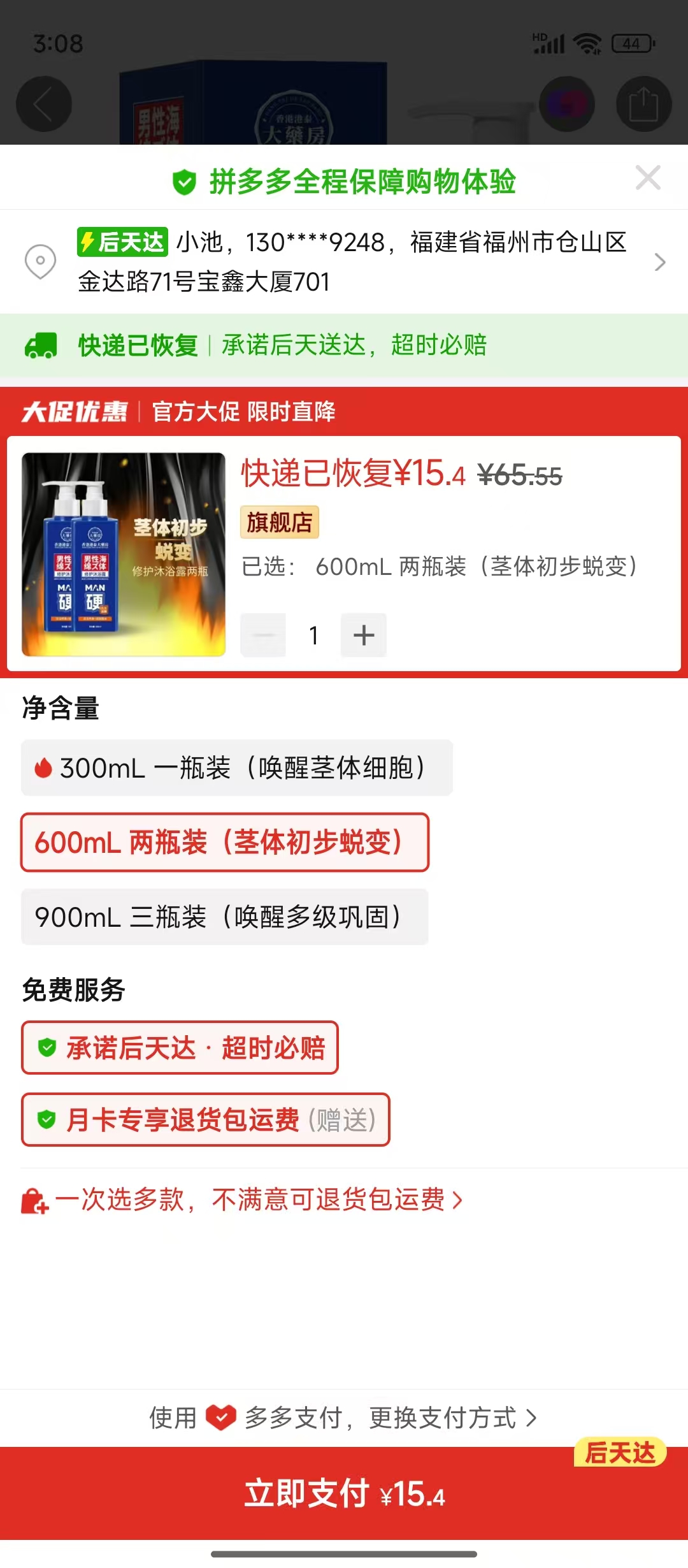 ③男性海绵体修护沐浴露 2瓶 (15.4¥)