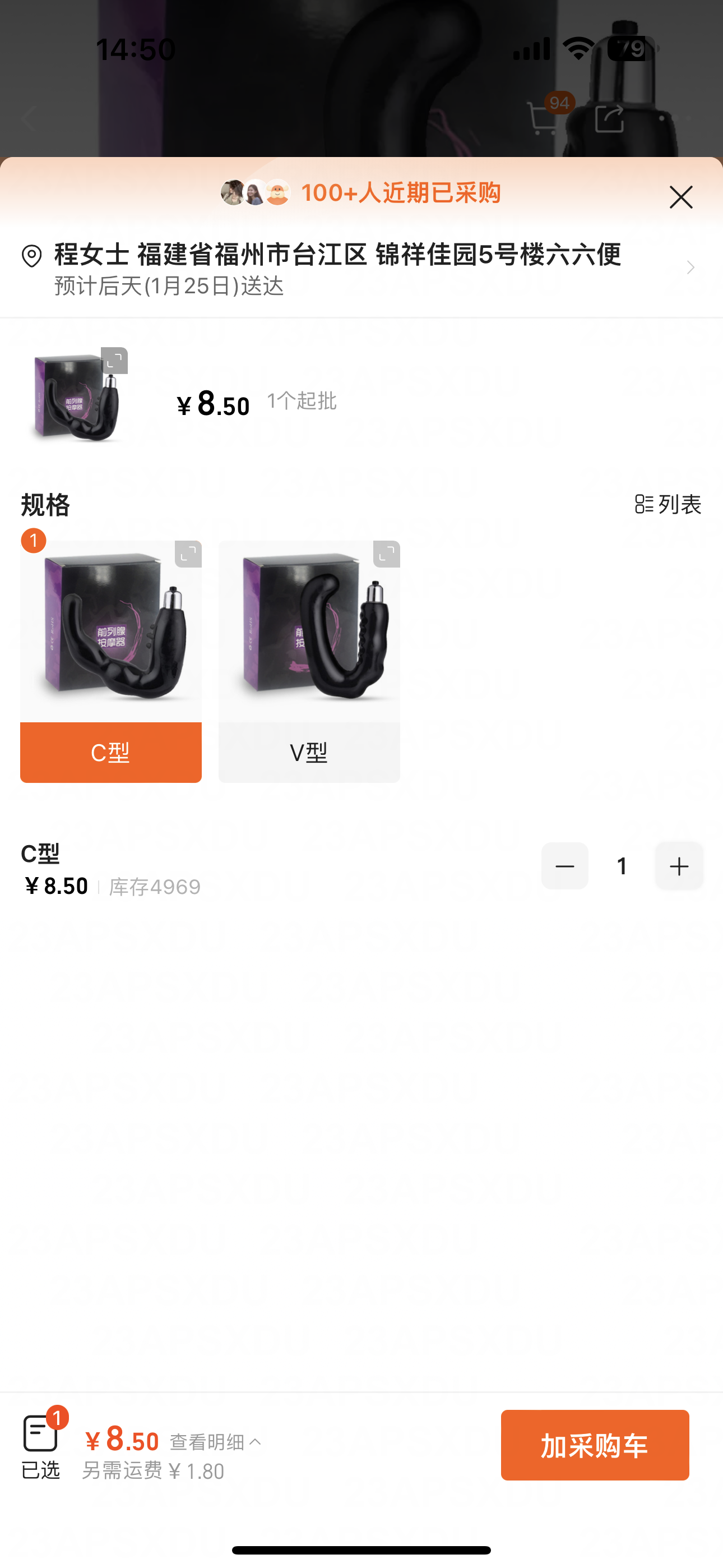 前列腺按摩器C型1個(10.3元)