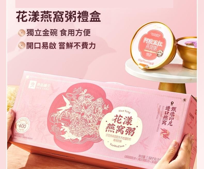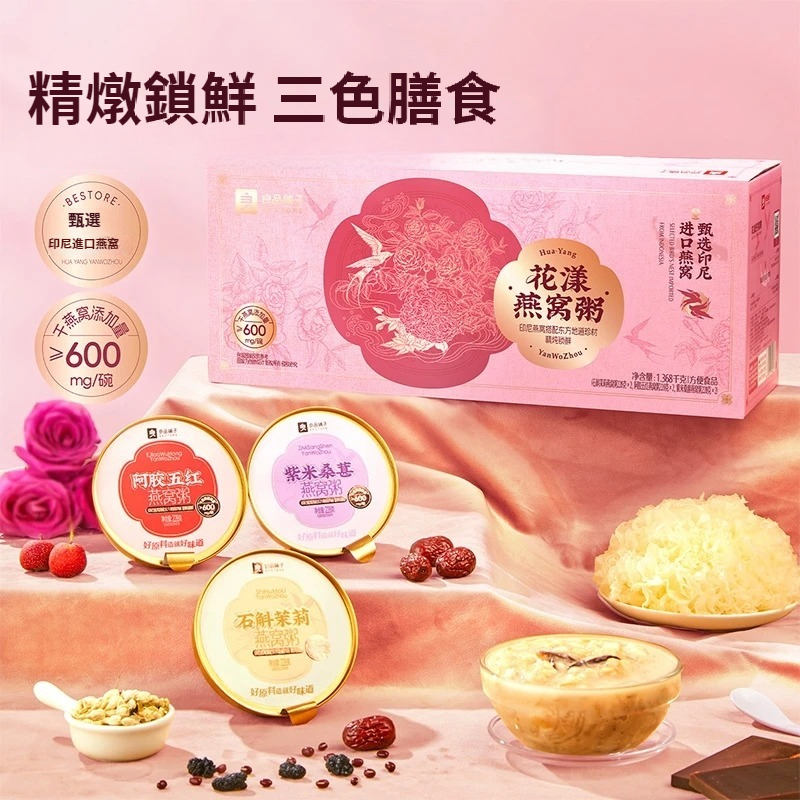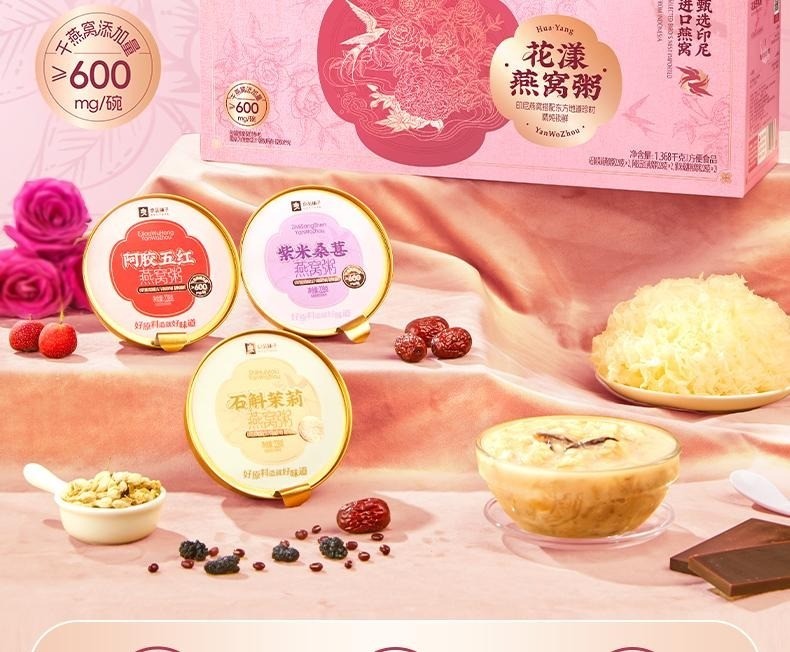 花漾燕窩粥6碗禮盒裝即食健康營養阿膠紫米石斛燕窩