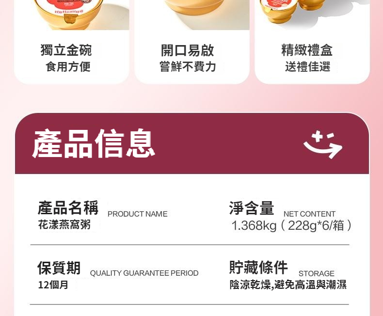 花漾燕窩粥6碗禮盒裝即食健康營養阿膠紫米石斛燕窩 NT$ 999