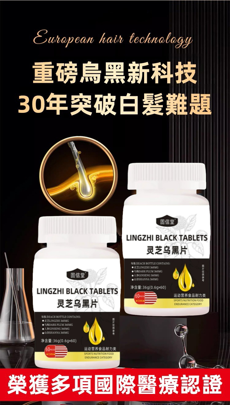 【陳峙嘉醫師推薦-靈芝烏黑片】內含靈芝,人參,烏梅等成分,補氣安神,內調滋補秀髮,一瓶針對脫髮,白髮,掉髮各種症狀,白髮從此不用染,每天兩粒,身體健康了,白髮變黑髮~ 天然靈芝提取,每天一粒,頭髮立馬黑!