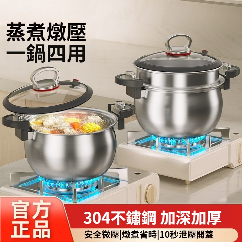 304不鏽鋼加厚蒸燉煮家用燉盅微壓湯鍋燜燒鍋電磁爐瓦斯爐通用