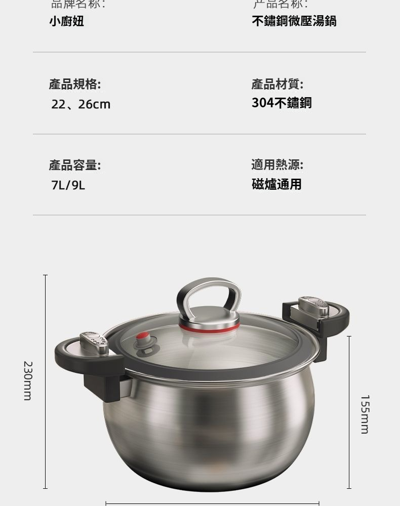 2.52kg 9L【微壓快燉 304鋼】送蒸籠:2799