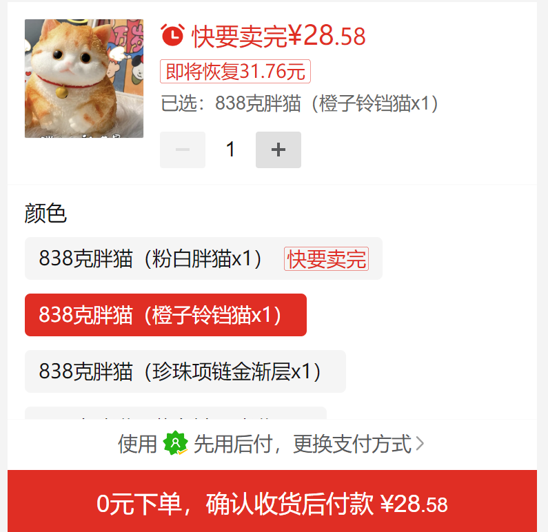 ②838g 胖貓 3只(橙子叮当猫*1、蝴蝶结围脖胖猫*1、爱心墨镜胖猫*1)
