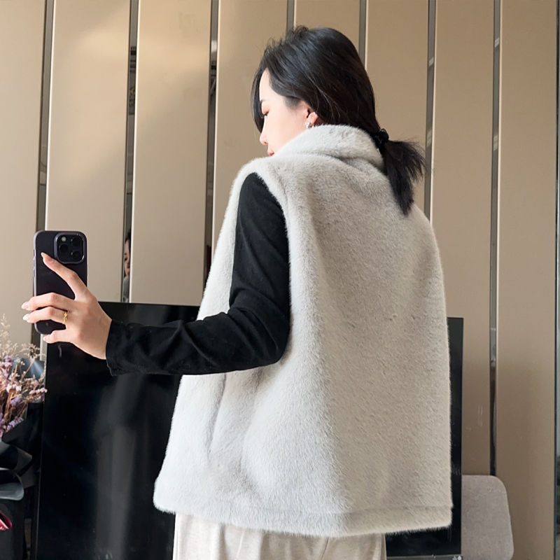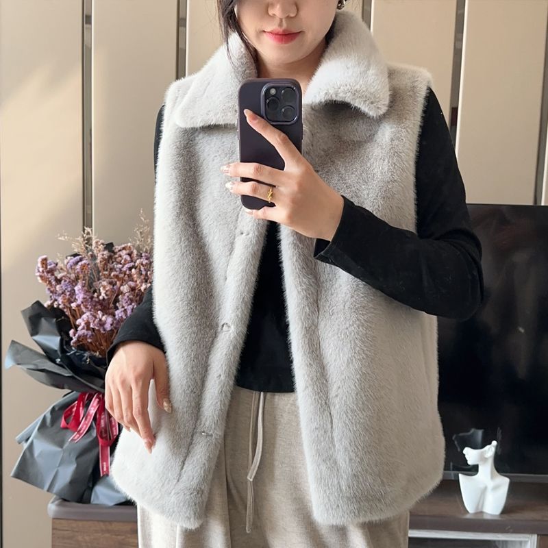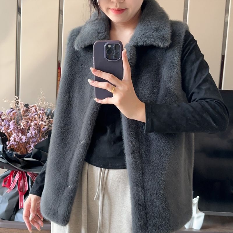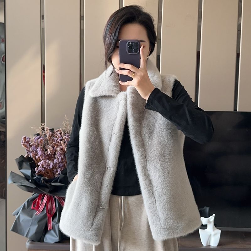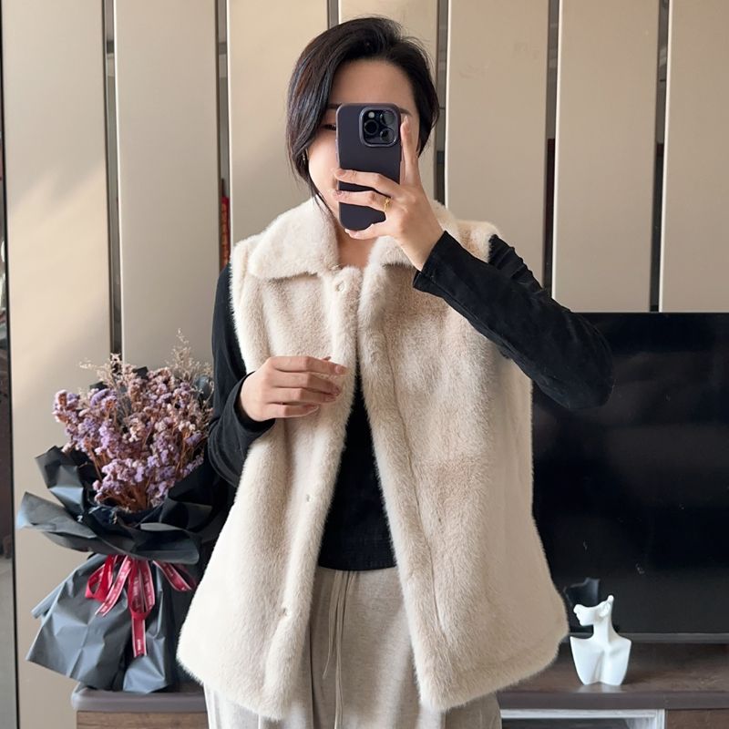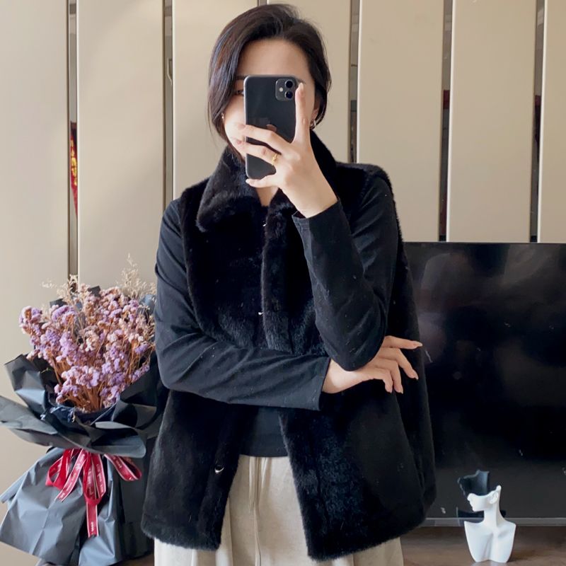 第 1 件 : 2025秋冬新款加厚貂毛草外套皮毛一體領馬夾短外套女外穿