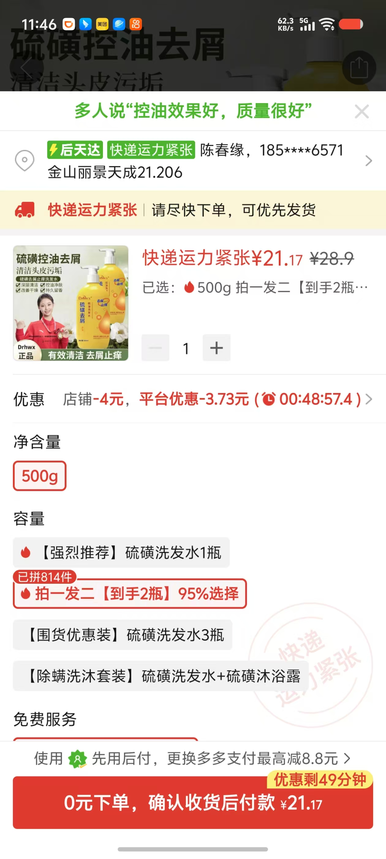硫磺洗髮水2瓶21.17元 https://mobile.yangkeduo.com/goods.html?ps=SynZKcNExj