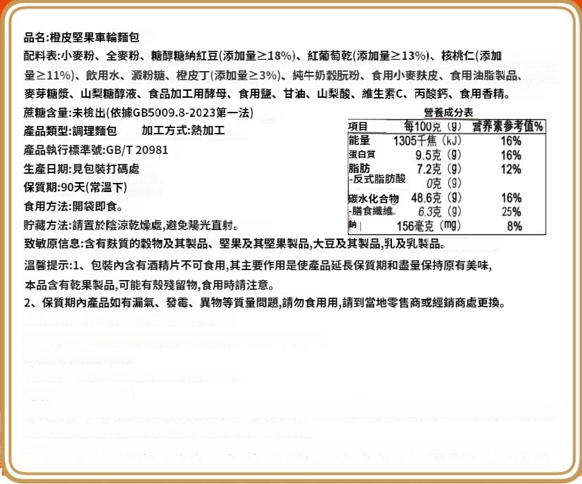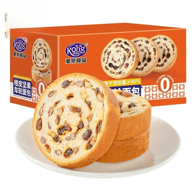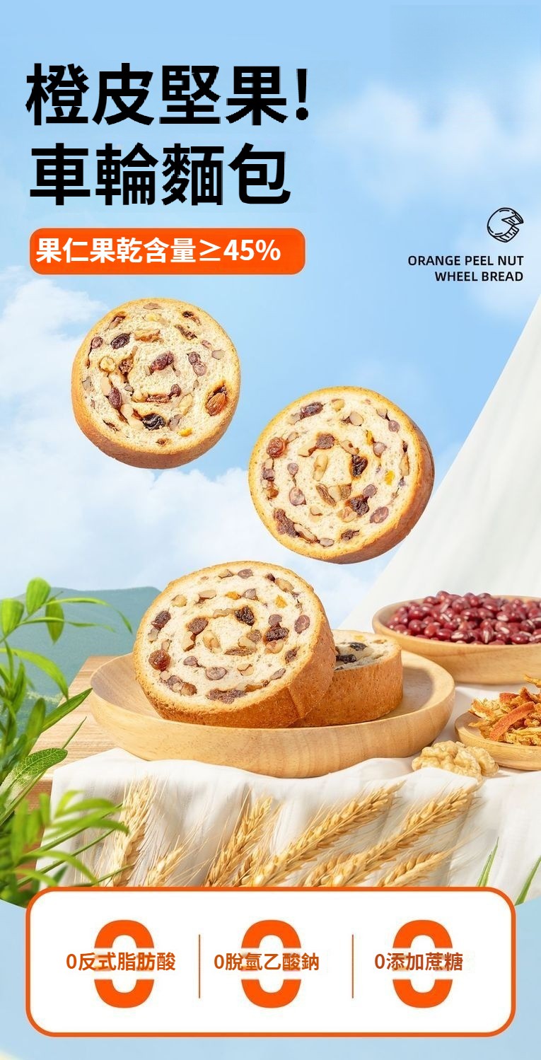 橙皮堅果車輪麵包營養早餐食品兒童糕點心休閒網紅小點心