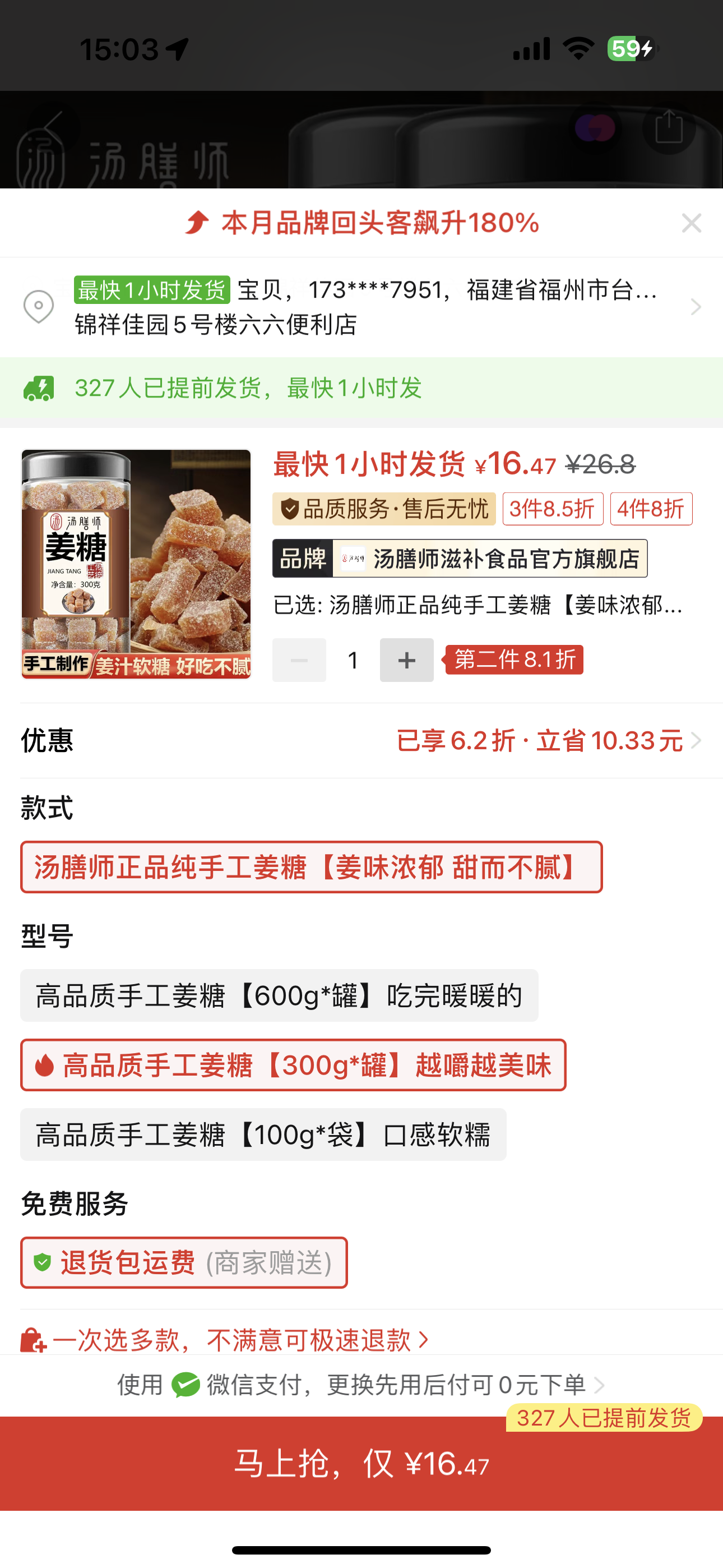 - 劉** 搶購成功 16 分鐘前