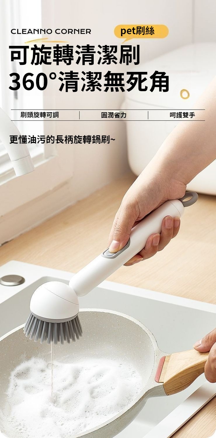 360度旋轉刷碗神器加液旋轉鍋刷清潔刷廚房刷鍋刷子多功能洗碗刷