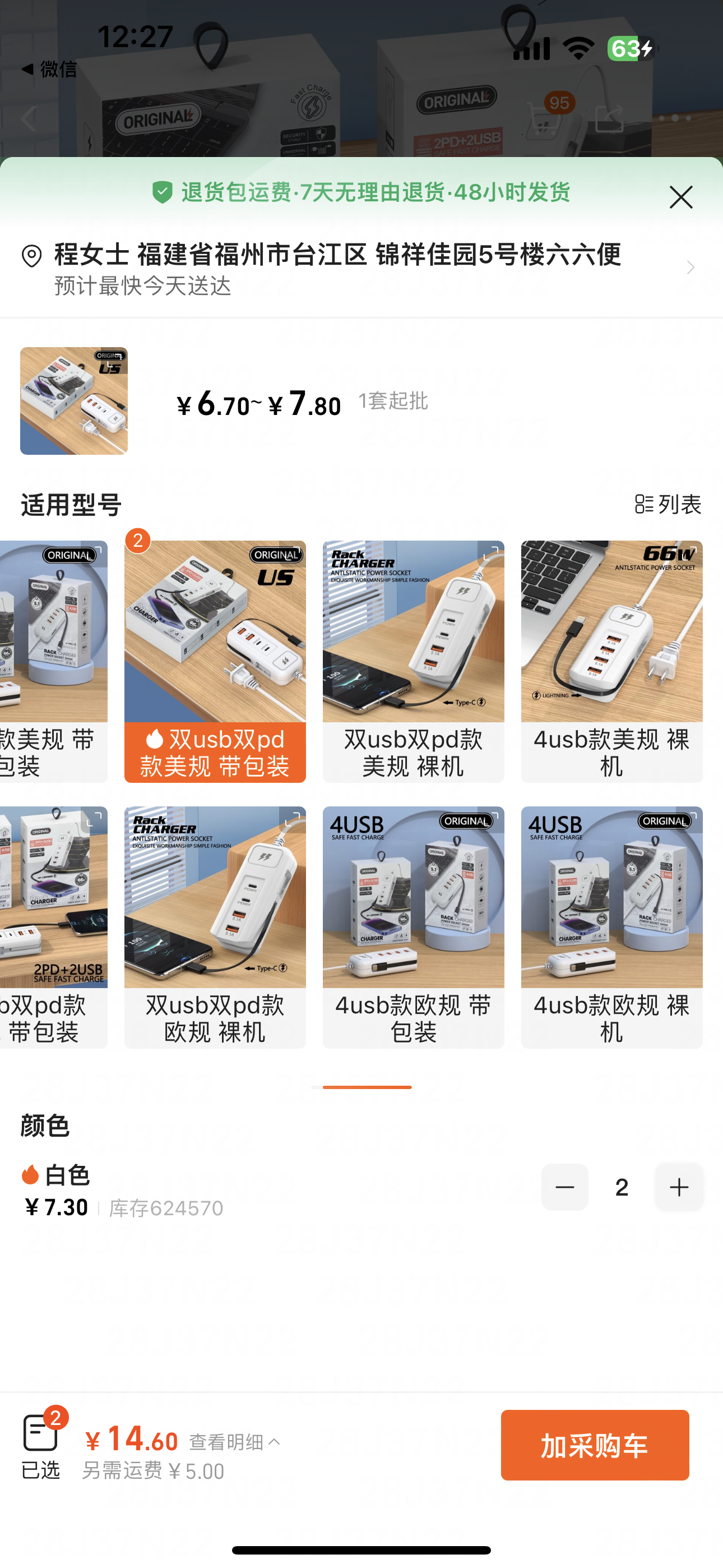 雙USB雙pd充電器美規帶包裝2入組