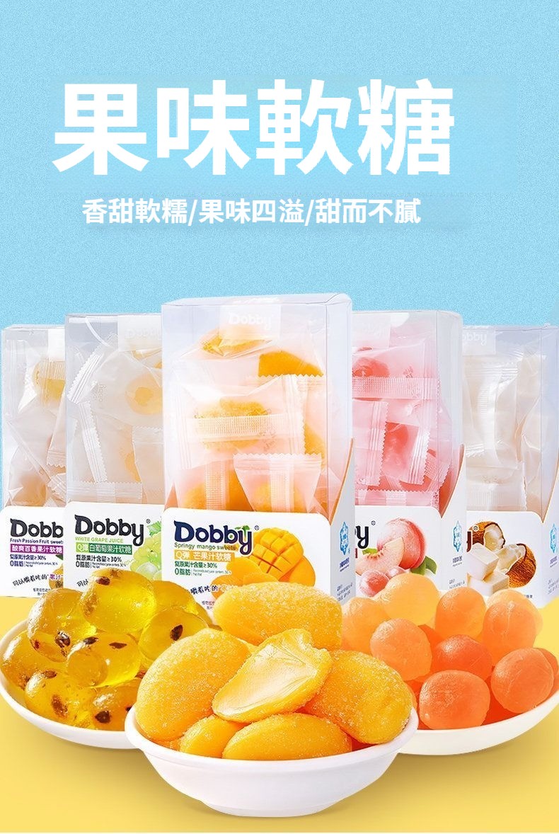 第 5 件 : Dobby哆比果汁軟糖100g爆漿QQ糖芒果白桃味休閑網紅水果酸甜零食