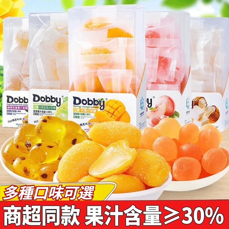 第 1 件 : Dobby哆比果汁軟糖100g爆漿QQ糖芒果白桃味休閑網紅水果酸甜零食