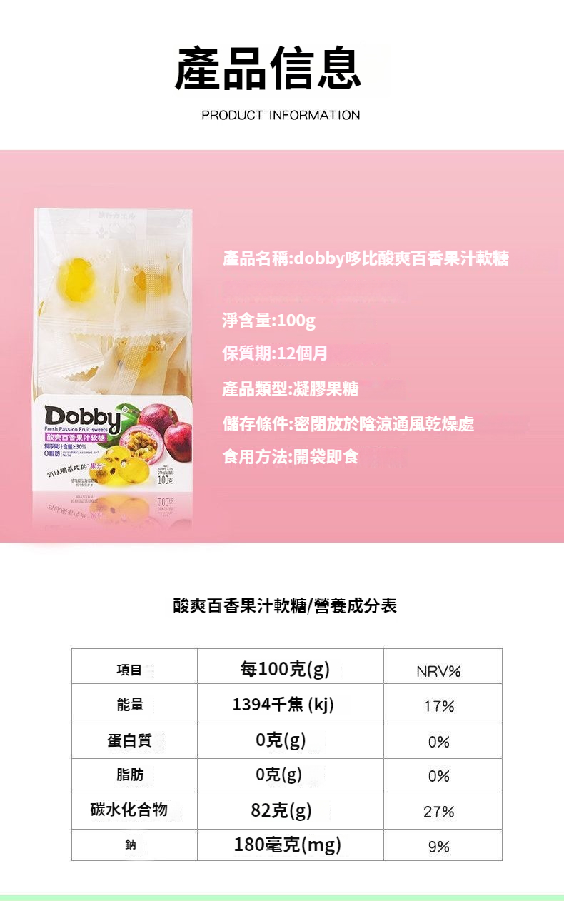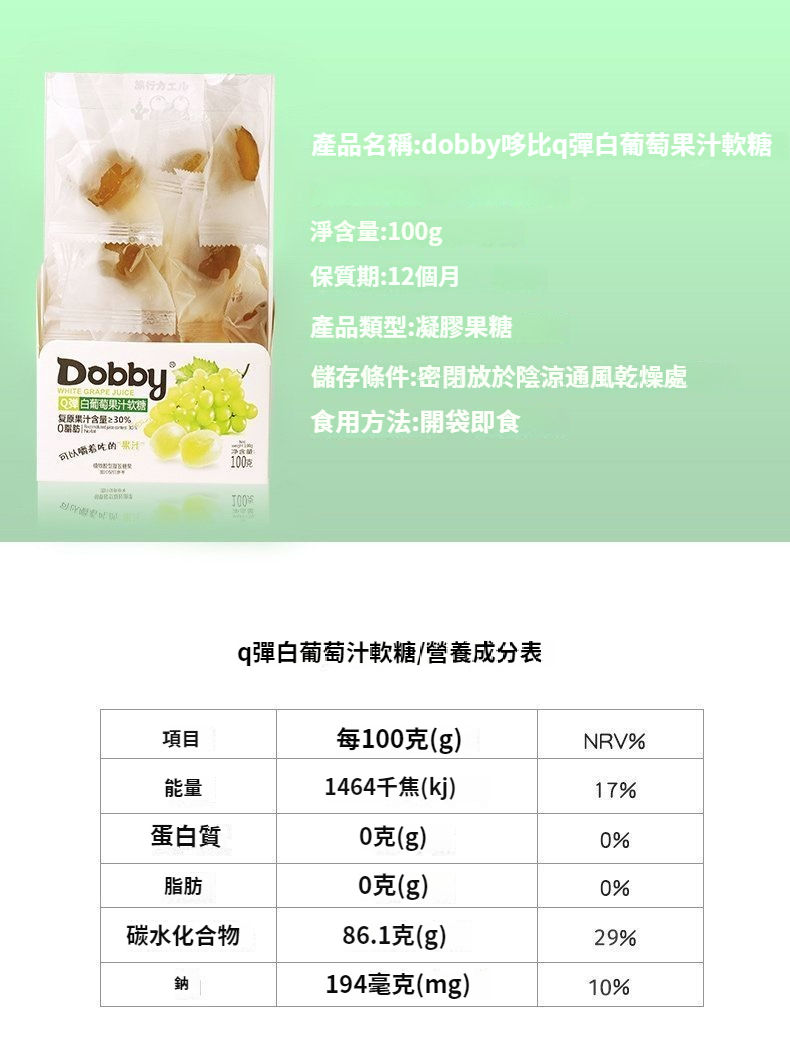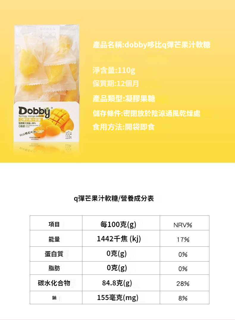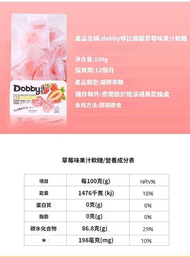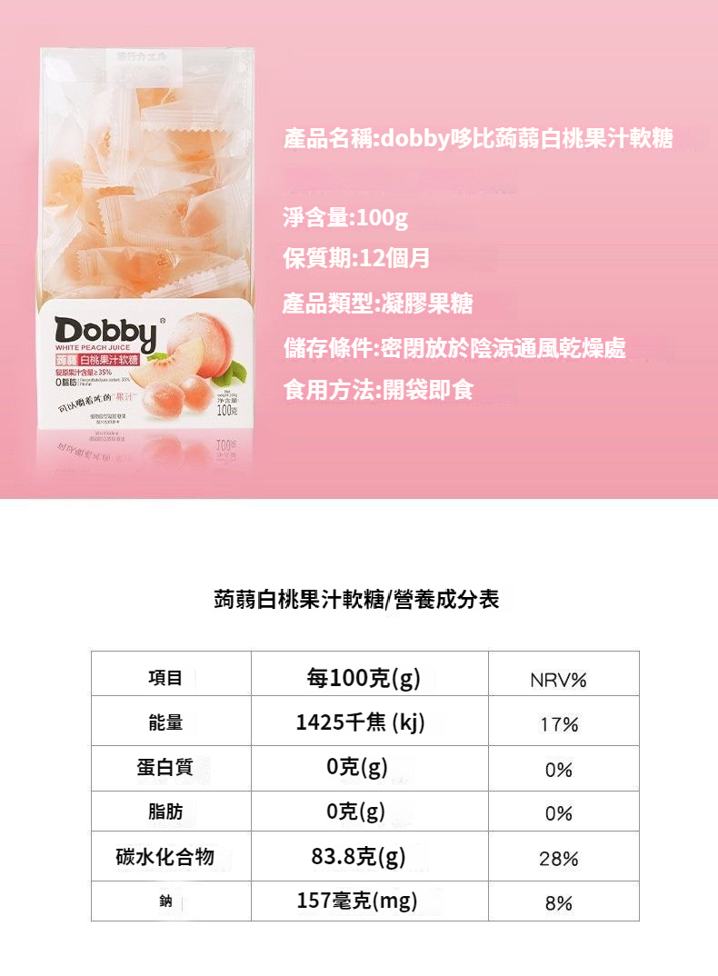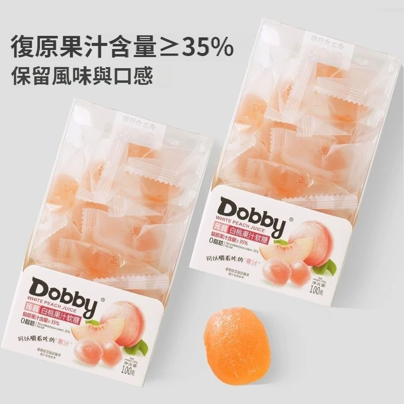 第 3 件 : Dobby哆比果汁軟糖100g爆漿QQ糖芒果白桃味休閑網紅水果酸甜零食