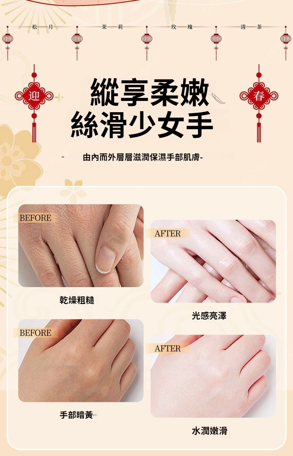 新春版沁潤抗皺手甲精華霜,套盒裝 秋冬補水保濕嫩白滋潤乾裂粗糙去死皮持久留香香氛