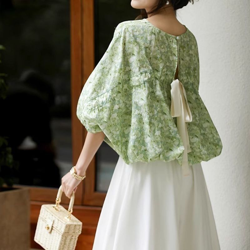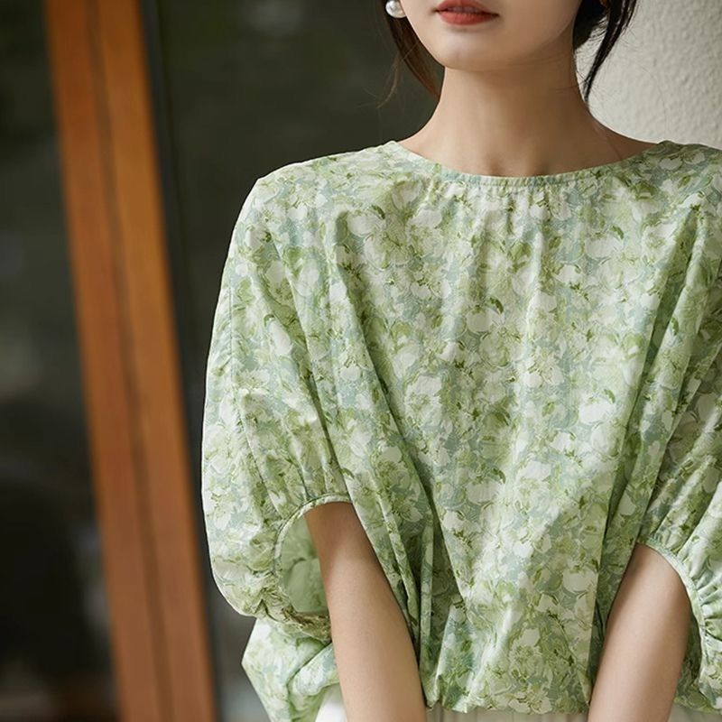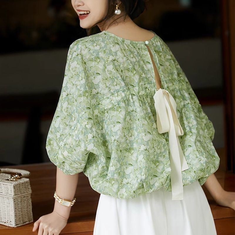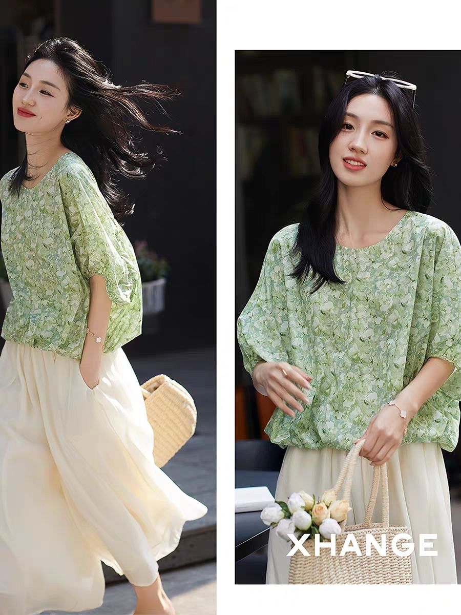 第 1 件 : 雪紡衫短袖蝙蝠袖女,夏季新款氣質寬鬆垂感冰冷感防曬寬鬆襯衫上衣