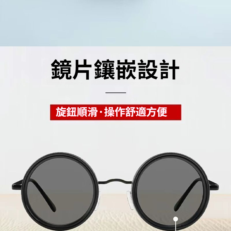 太陽鏡墨鏡9檔手動調節變光圓形可調節偏光眼鏡nd眼鏡可調