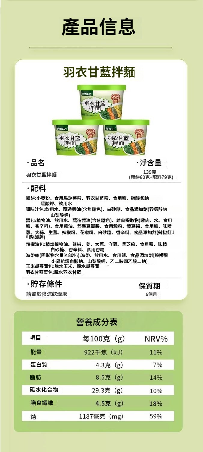 羽衣甘藍輕輕麵免煮非油炸泡麵酸辣醬汁拌麵 NT$ 1399