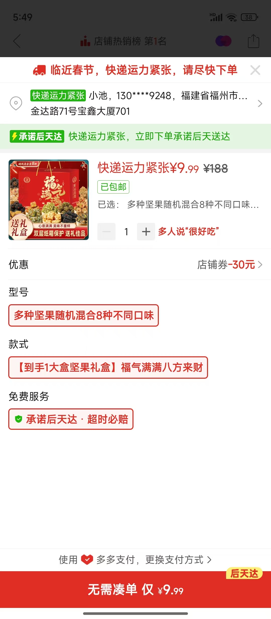 ③ 小份堅果禮盒 8種口味250克 1袋 (9.99¥)