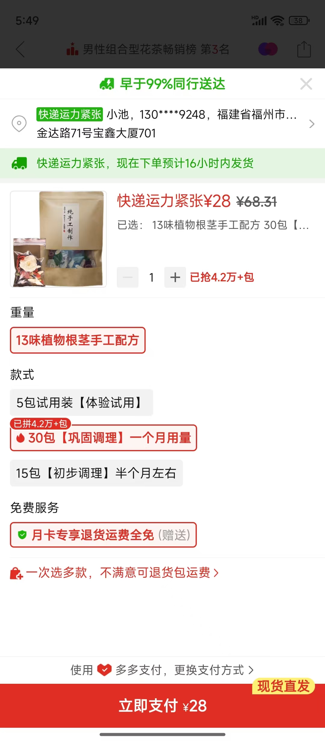 ② 十三太保茶 30包 (28¥)