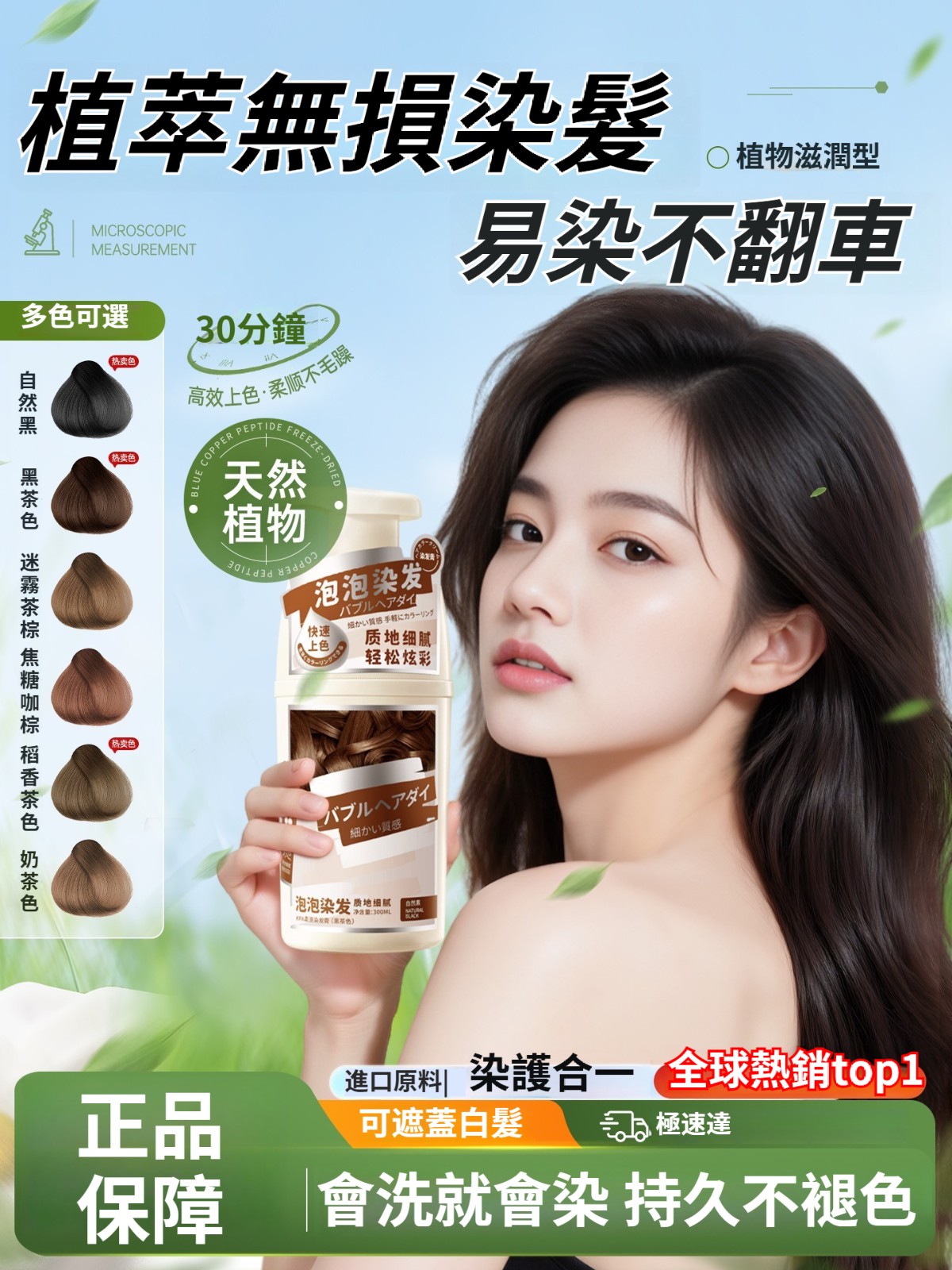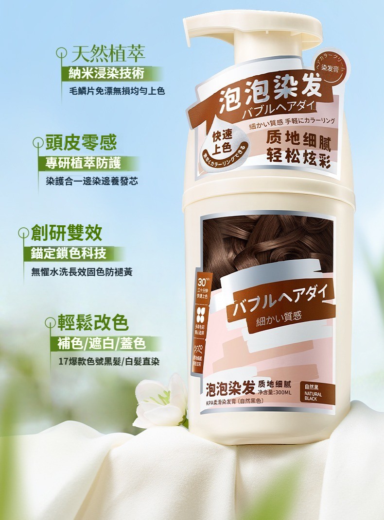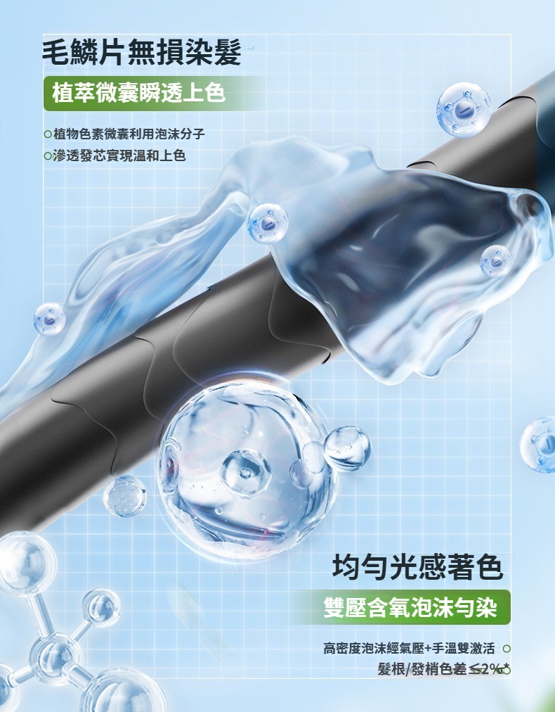 【儒意無損泡泡染髮膏】泡泡染髮劑,無刺激無損抗敏正品品牌植萃奢護染髮,藥監局權威認證,在家輕松速染沙龍靚髮染髮膏