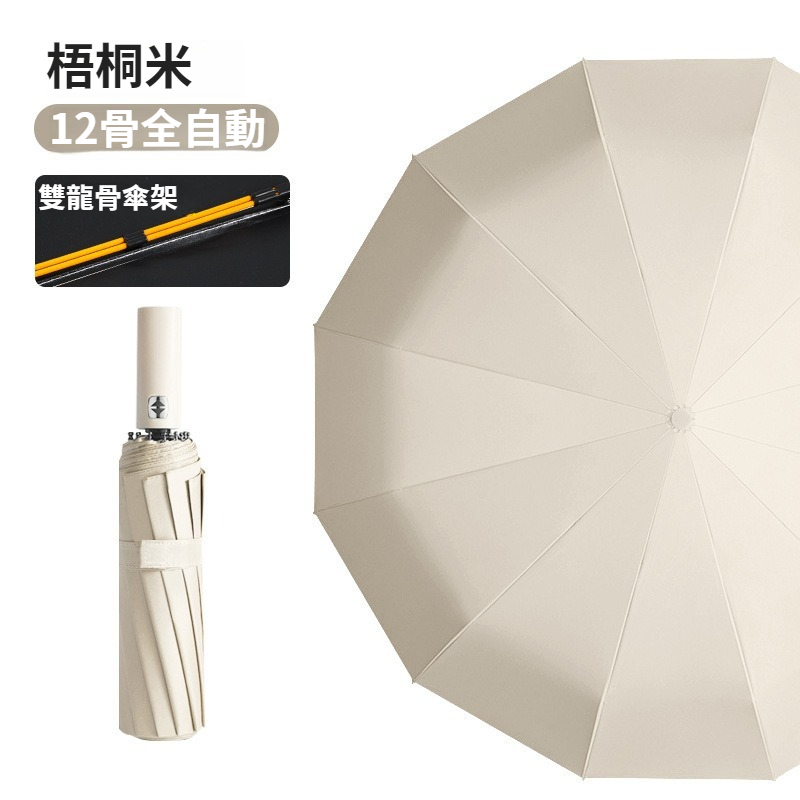 【自動款24股加強纖維黑膠☆晴雨兩用】-梧桐米