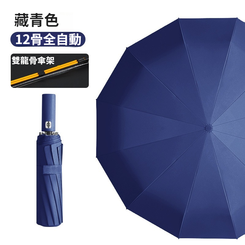 【自動款24股加強纖維黑膠☆晴雨兩用】-藏青色