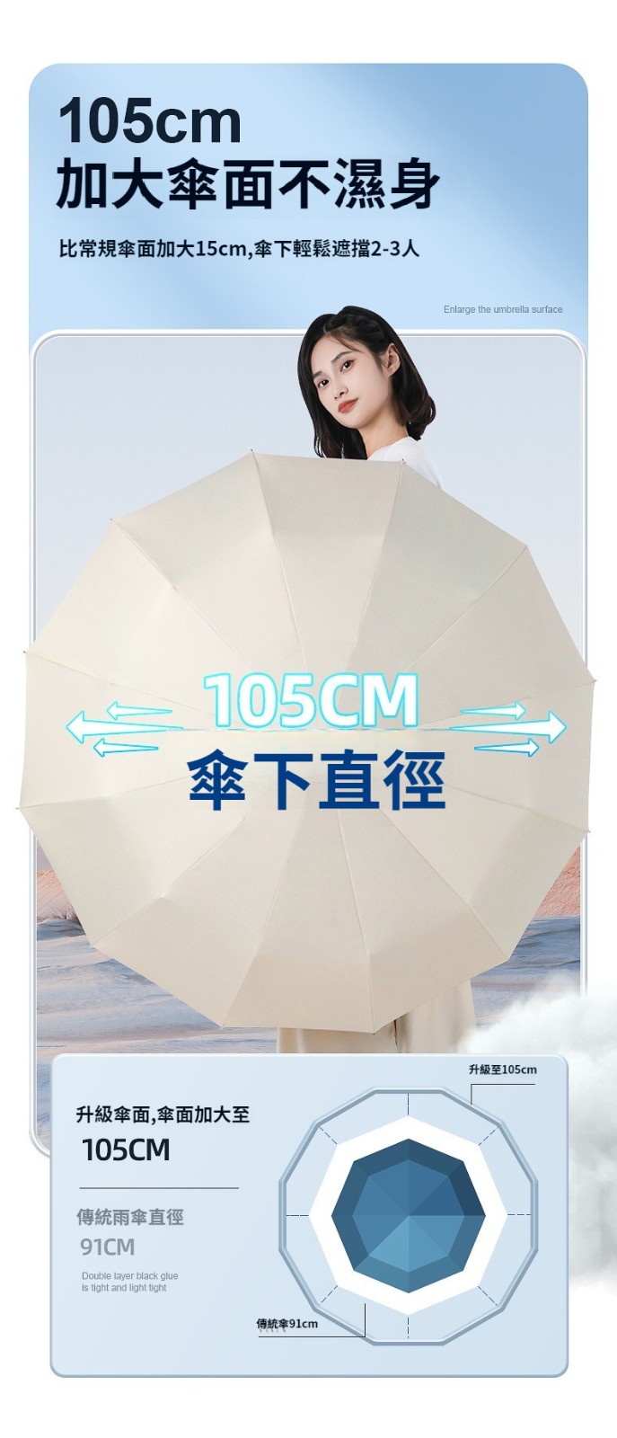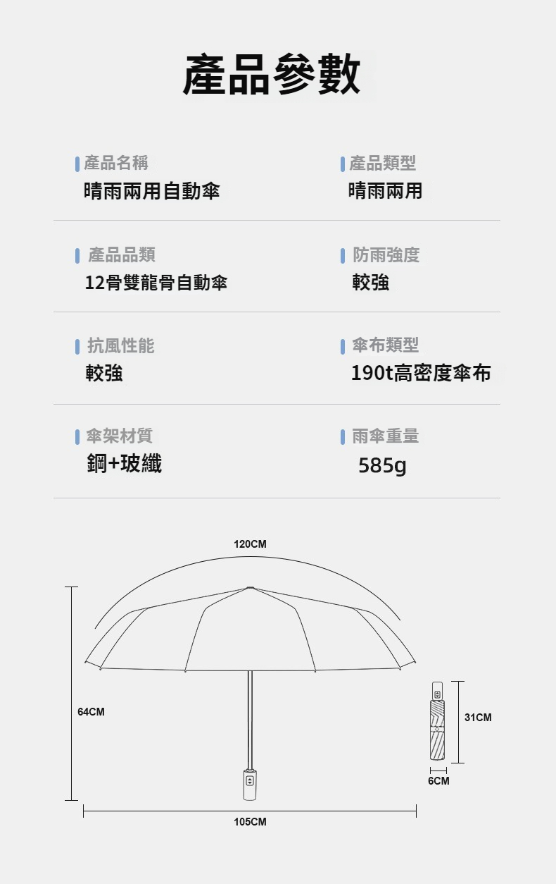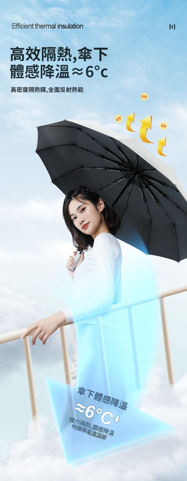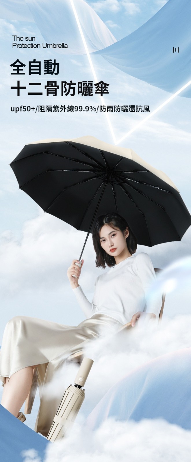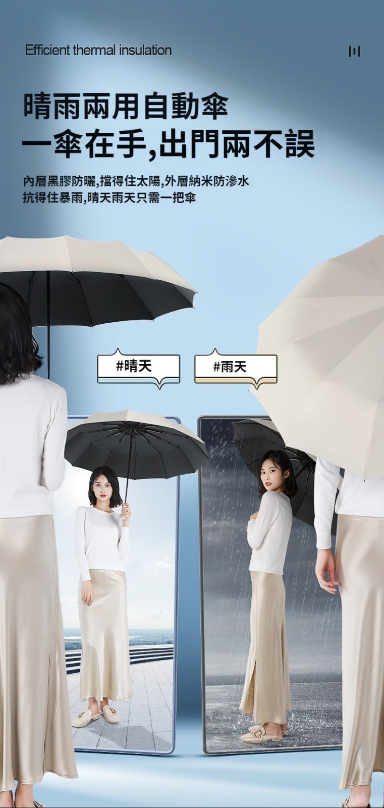 第 4 件 : 全自動24骨雙龍骨傘加強防曬遮陽傘高級感男士傘黑膠防紫外線傘