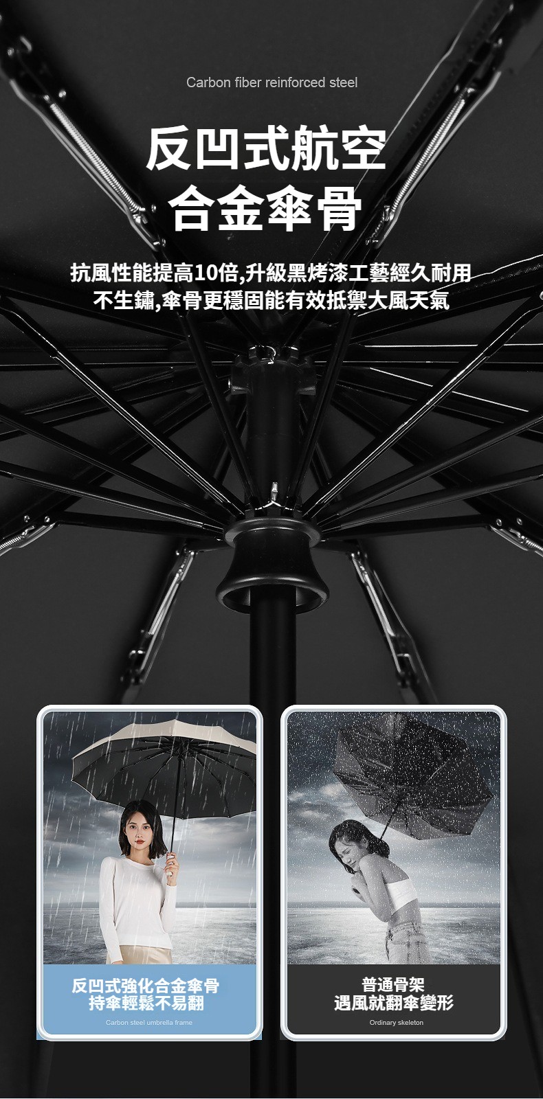 【自動款24股加強纖維黑膠☆晴雨兩用】-經典黑
