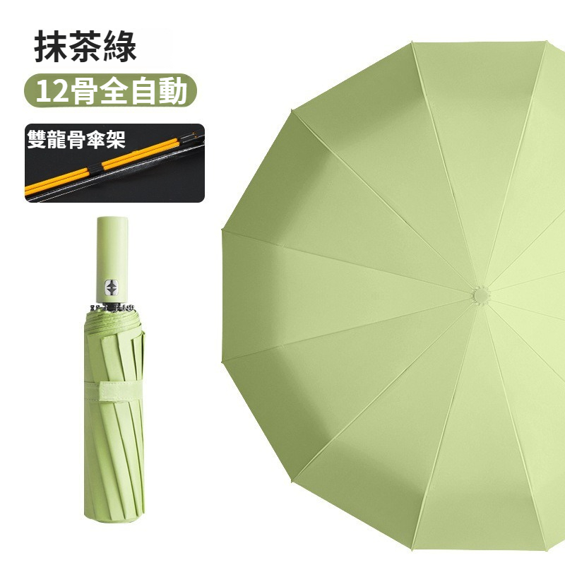 【自動款24股加強纖維黑膠☆晴雨兩用】-抹茶綠