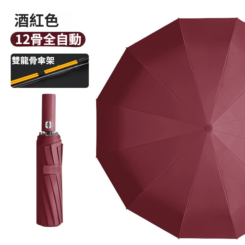 【自動款24股加強纖維黑膠☆晴雨兩用】-酒紅色